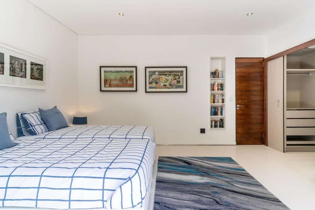 The second bedroom leads to a quaint private courtyard, complete with a two-seater breakfast table, creating a tranquil nook for morning coffee. This room also includes exercise equipment, allowing guests to stay active during their stay.