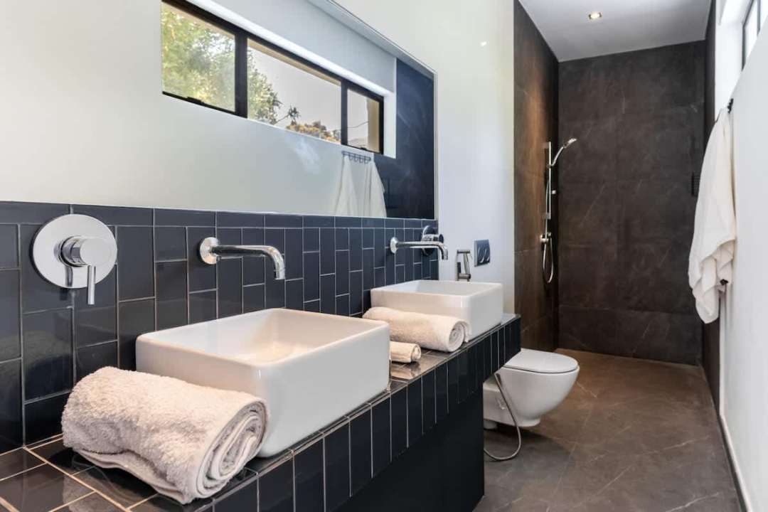 En-suite bathroom with double head shower, double vanity and hand-held bidet