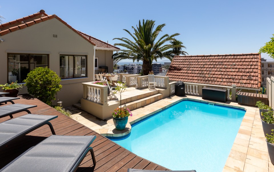 Submerge yourself in laid-back luxury while staying in Cape Town’s buzzing Green Point. Introducing 15 on Wessels, a grand 4 bedroomed villa showing off seascapes and mountain vistas to go with the comforting surroundings. Wake up in lavish spaciousness before heading out to one of the countless local attractions, including Green Point Urban Park & Biodiversity Garden or globally acclaimed shopping outlets and eateries. Take full advantage of being in short walking distance to the V&A Waterfront, the heartbeat of Cape Town. A sparkling blue pool is waiting to cool you down on those sizzling summer days, or just laze away on a poolside lounger with your favorite book. A perfect holiday accommodation option for guests who appreciate quality, comfort, and convenience.
