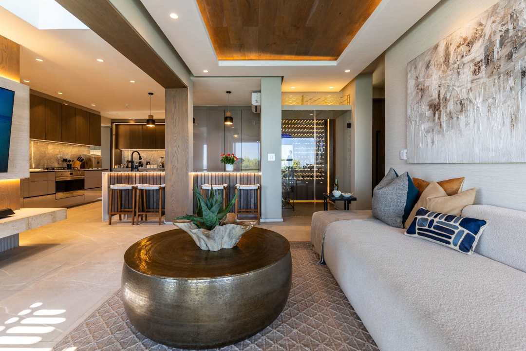 The open-plan lounge, dining and kitchen area forms the heart of the home. Designed with modern finishes, high-end details and abundant natural light, this space invites effortless relaxation and entertaining.