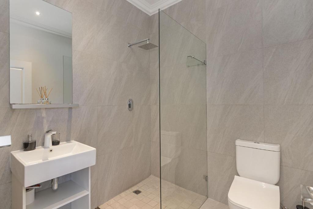 Additionally, Bathroom 7 is shared and equipped with a toilet. The bedrooms are thoughtfully designed with a stylish and colorful touch, enhancing your overall stay at Villa Balmoral 14, making it an excellent choice for those looking for a luxurious and memorable vacation in Cape Town’s Bloubergstrand.