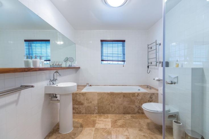 - Bathroom 2 with basin, bath, shower and toilet