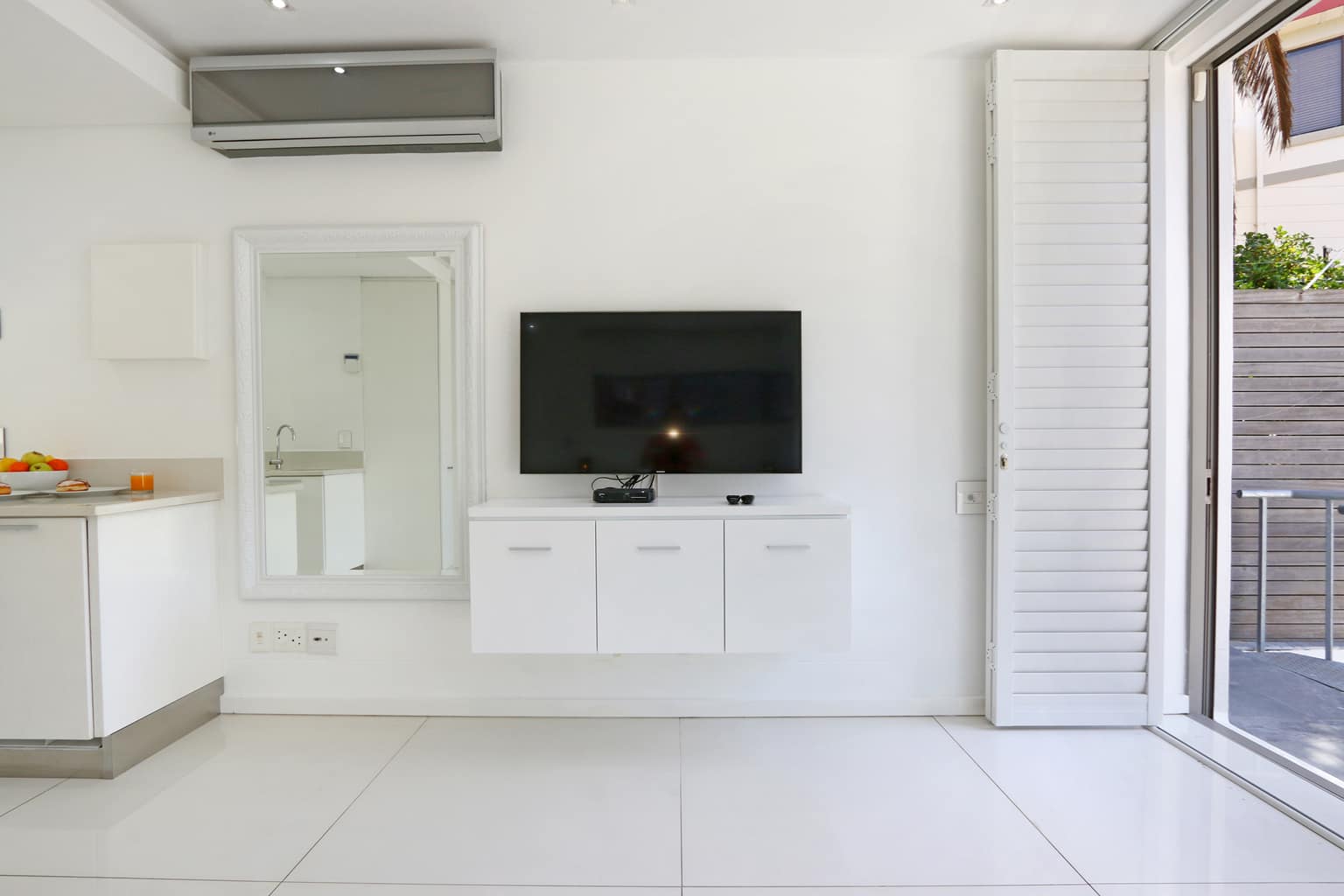 Four well-appointed bedrooms, all air-conditioned and en-suite, provide privacy and comfort. The master suite enjoys sea views and private balcony access, while the remaining bedrooms offer mountain outlooks and flexible accommodation. A separate fourth bedroom suite, accessed via an exterior spiral staircase, adds an extra layer of independence—ideal for extended family, older children, or guests seeking additional privacy.