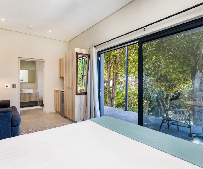 The 5th bedroom is accessed from the garden and is an independent suite with its own kitchenette / mini lounge, and terrace. Perfect for older children or Grand-Parents who might want their own space. This room has a Queen bed, extra length.