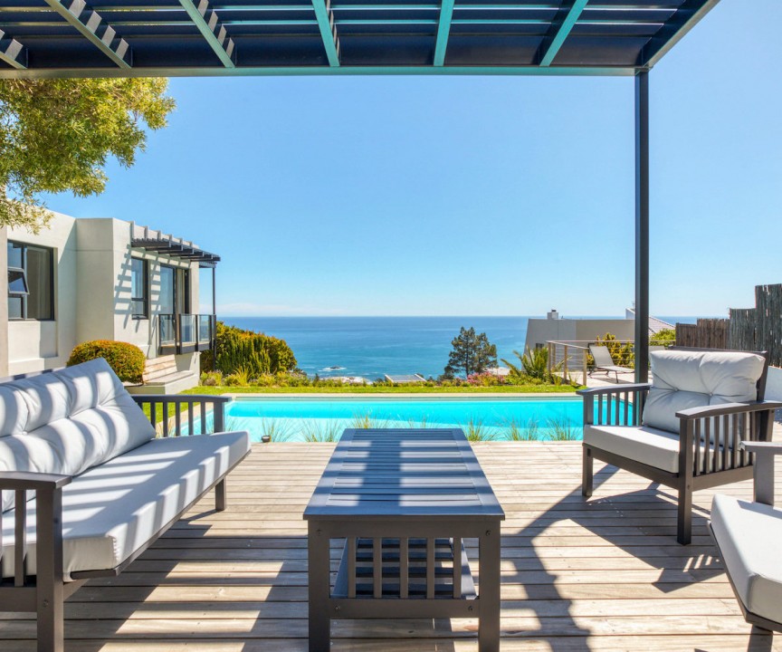 The 5 bedroom villa is located near the top of Camps Bay with superb views and easy access to both the beach and the centre of Cape Town. Table Mountain National Park is one block away from excellent hiking and the beach can be reached by foot in 20 minutes.