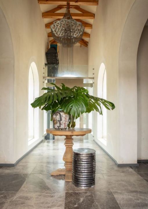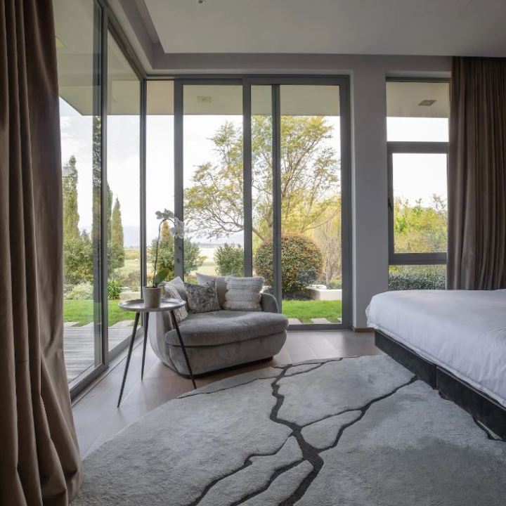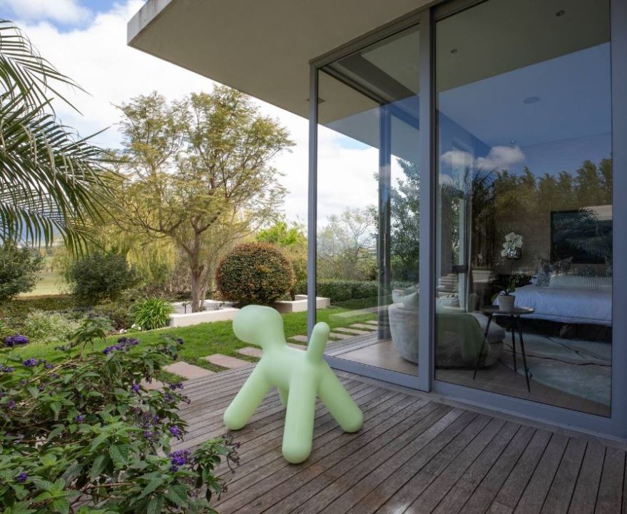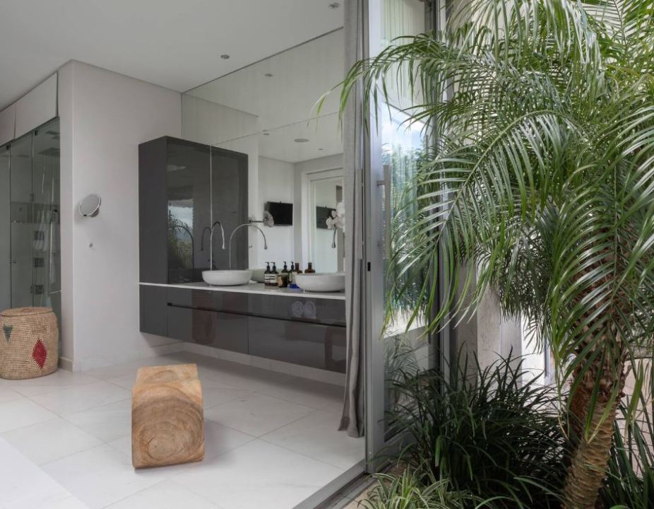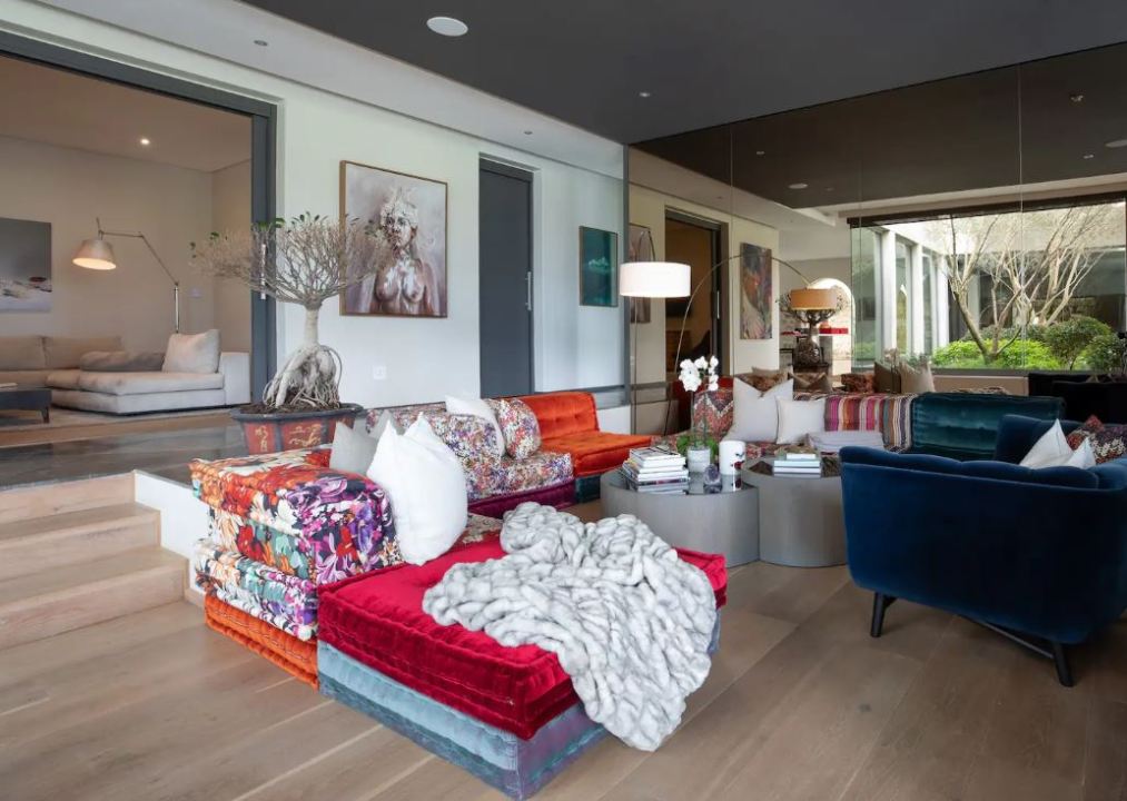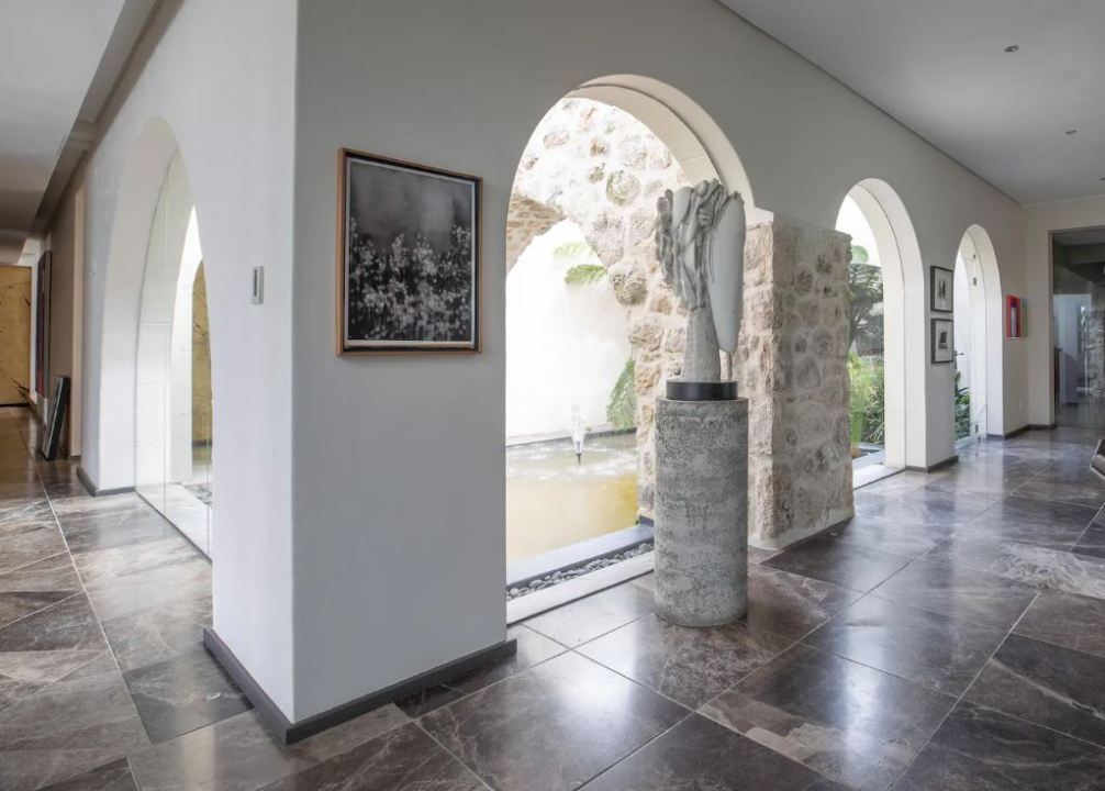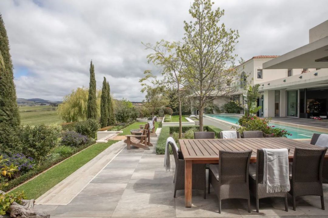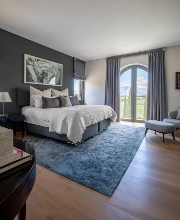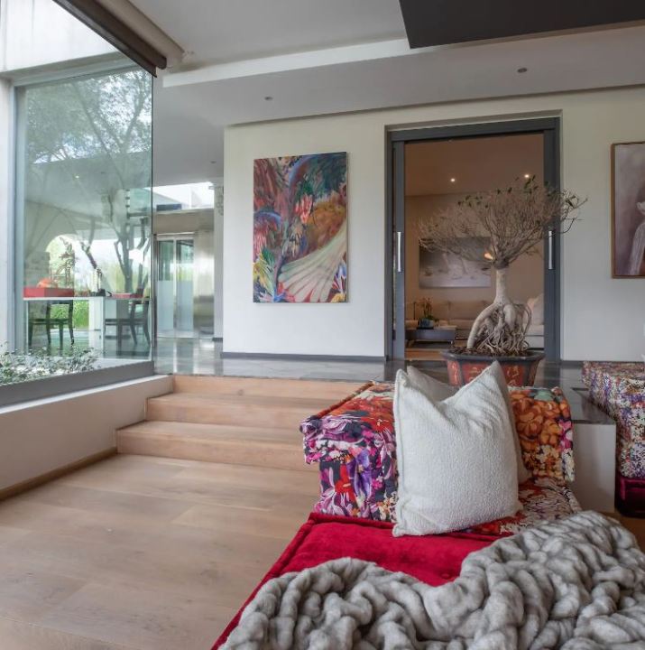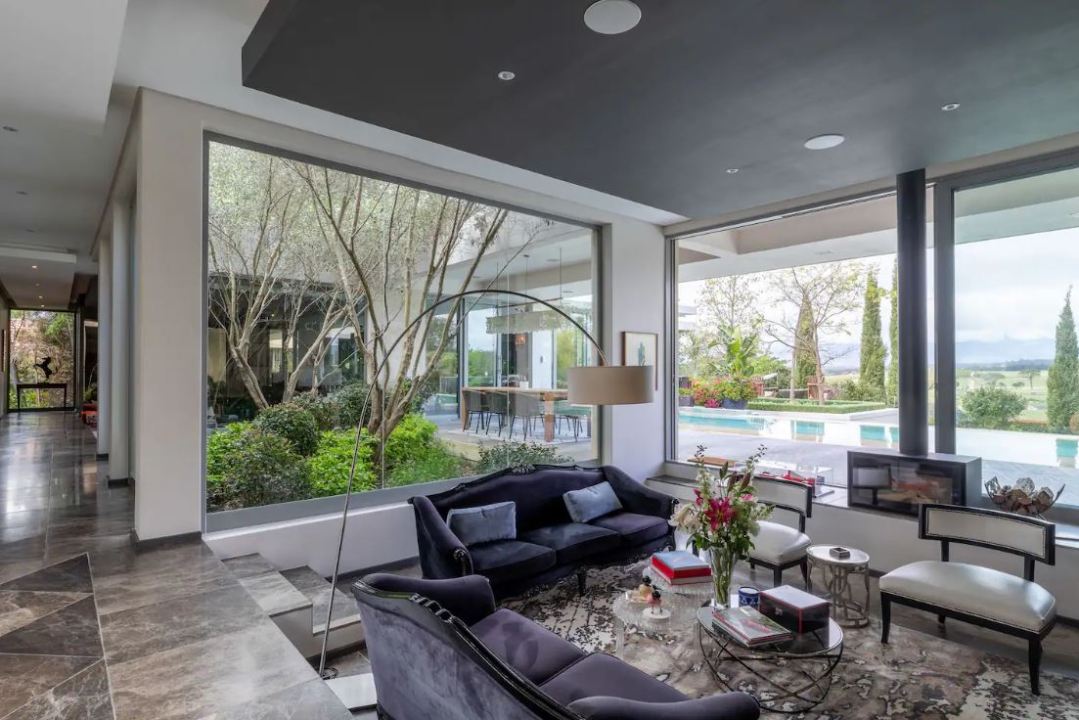 This luxurious 6-bedroom villa is hidden in a tranquil and private setting in Winelands Estate, with the best view of the Helderberg mountain range. Enjoy the rich, vibrant decor that exclusively showcases work from the best local artists and artisans.