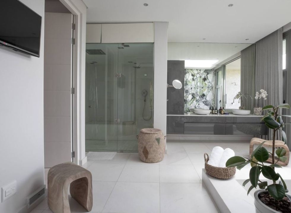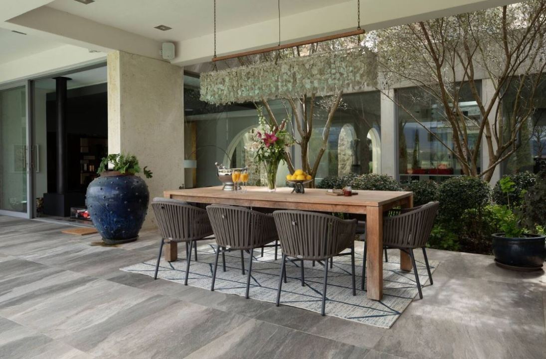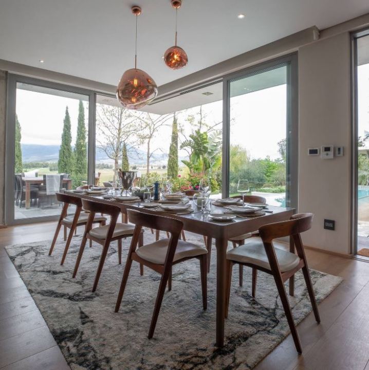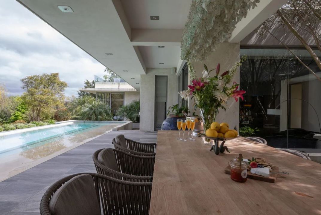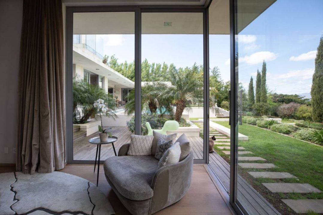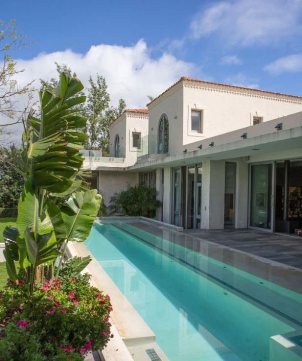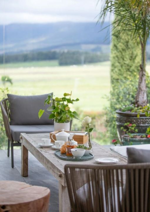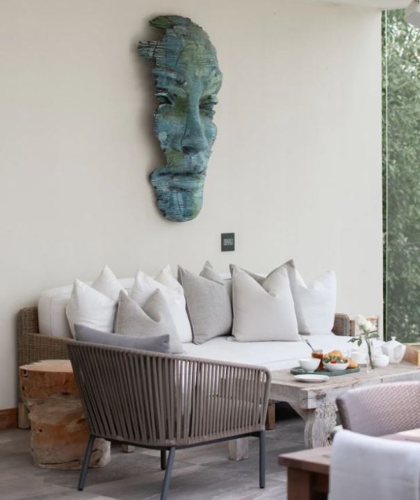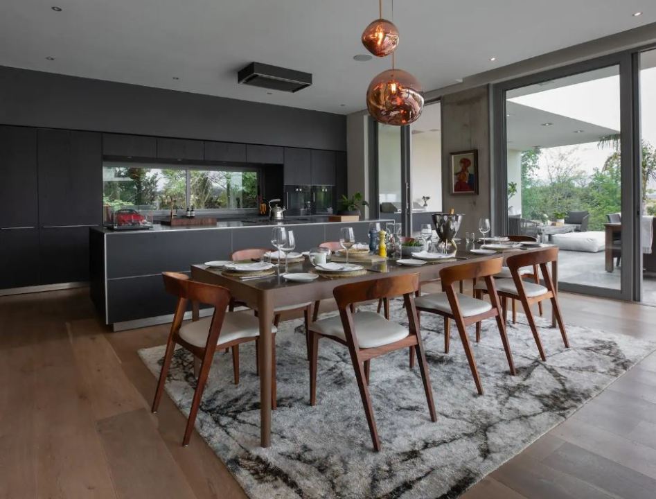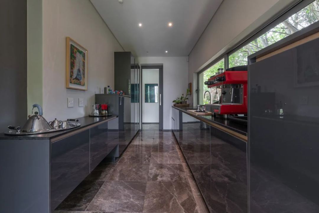 This luxurious 6-bedroom villa is hidden in a tranquil and private setting in Winelands Estate, with the best view of the Helderberg mountain range. Enjoy the rich, vibrant decor that exclusively showcases work from the best local artists and artisans.