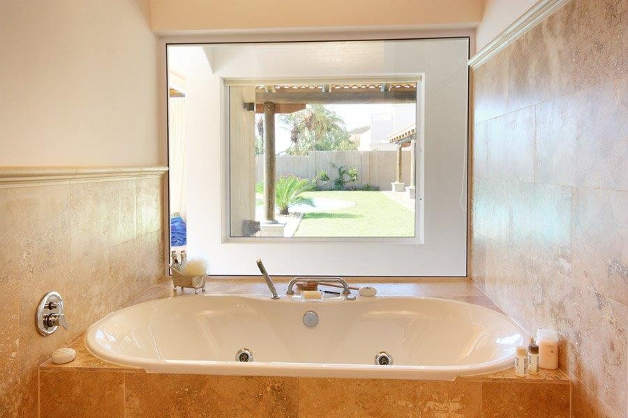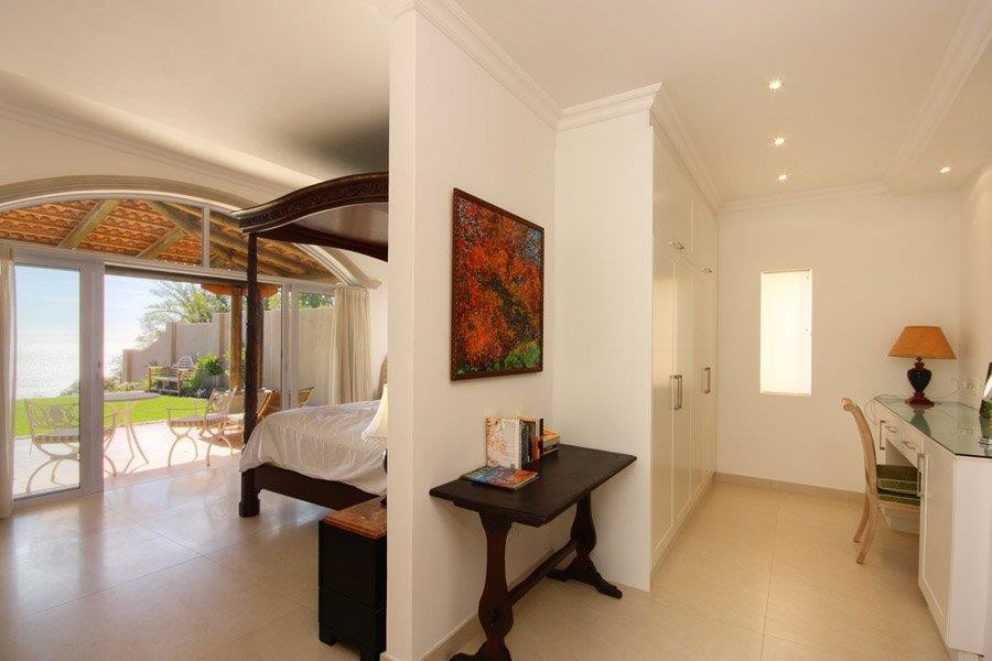 The main bedroom has a king size bed and direct access to the pool, opening to a wind free patio. It has his and hers bathrooms and dressing areas.