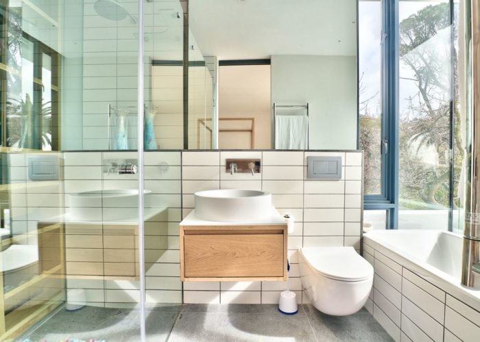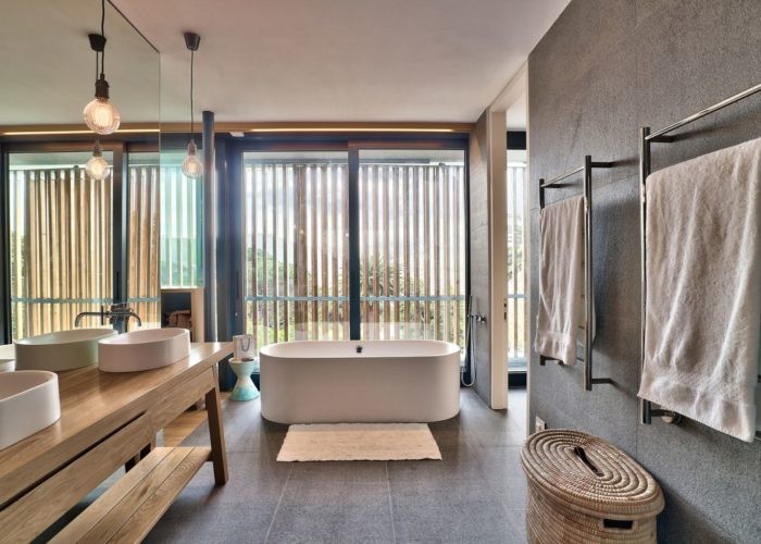 The master suite is positioned in the corner with glass doors on both sides sliding right back and opening on to the balcony. Views from here are impressive and mesmerising.
