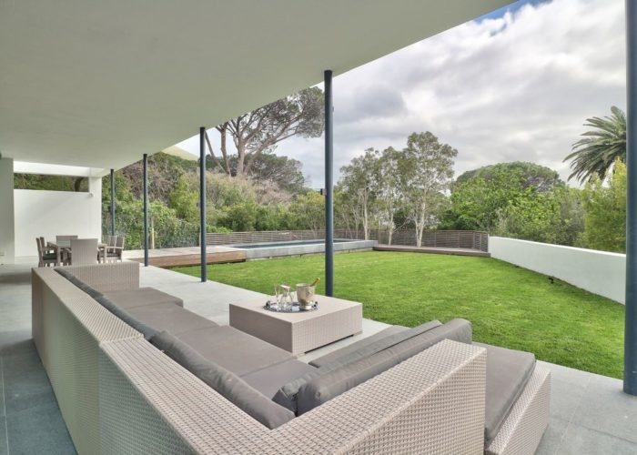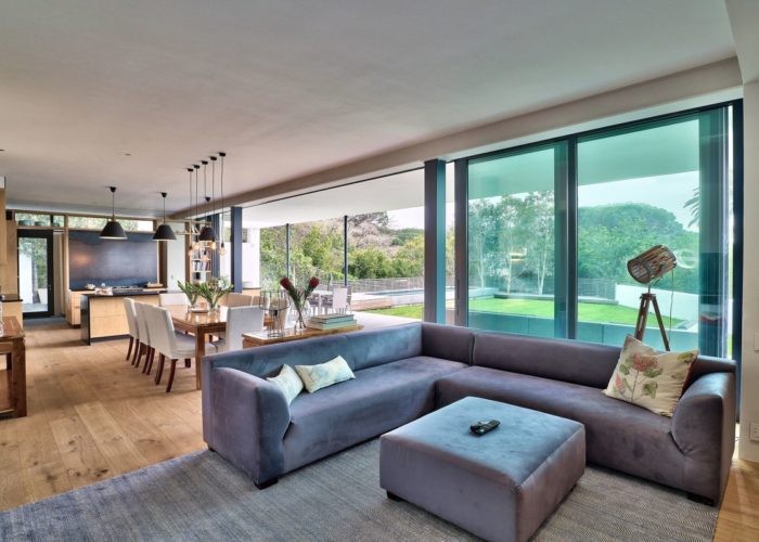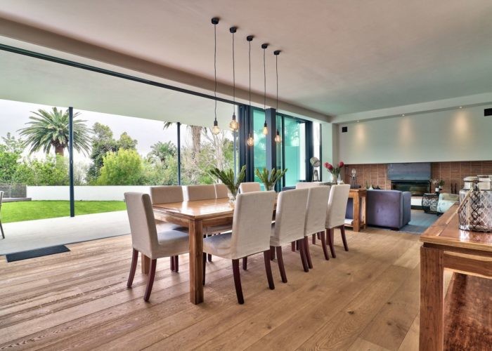 The indoor and outdoor living areas flow together seamlessly and spill out into the garden and the swimming pool deck beyond.