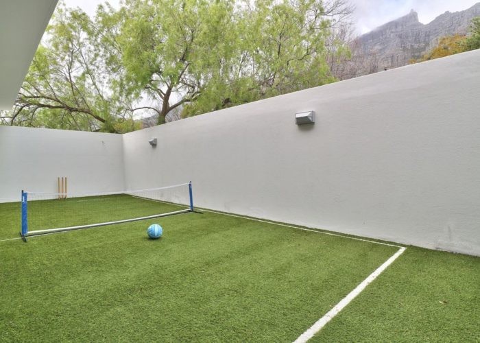 There is also a TV and reading lounge on this level leading out to an enclosed astroturf sport courtyard where hours of tennis and soccer can be enjoyed.
