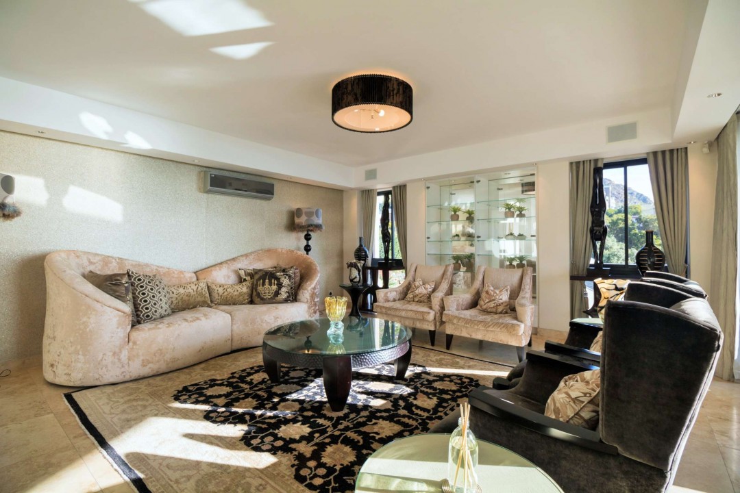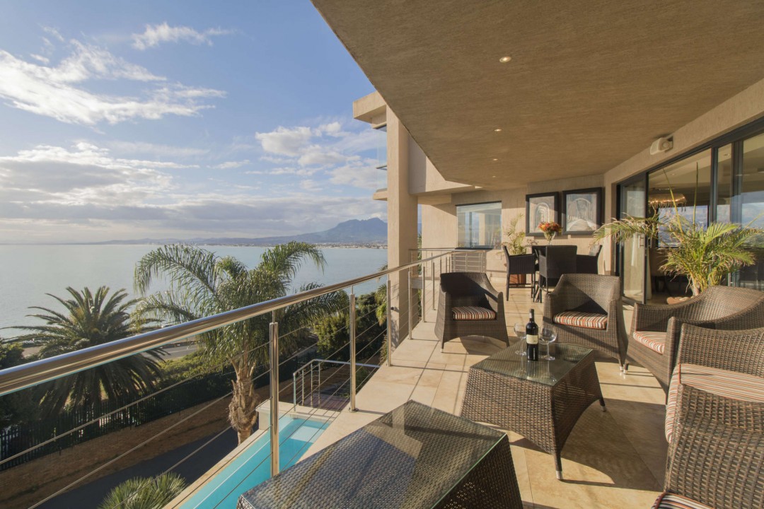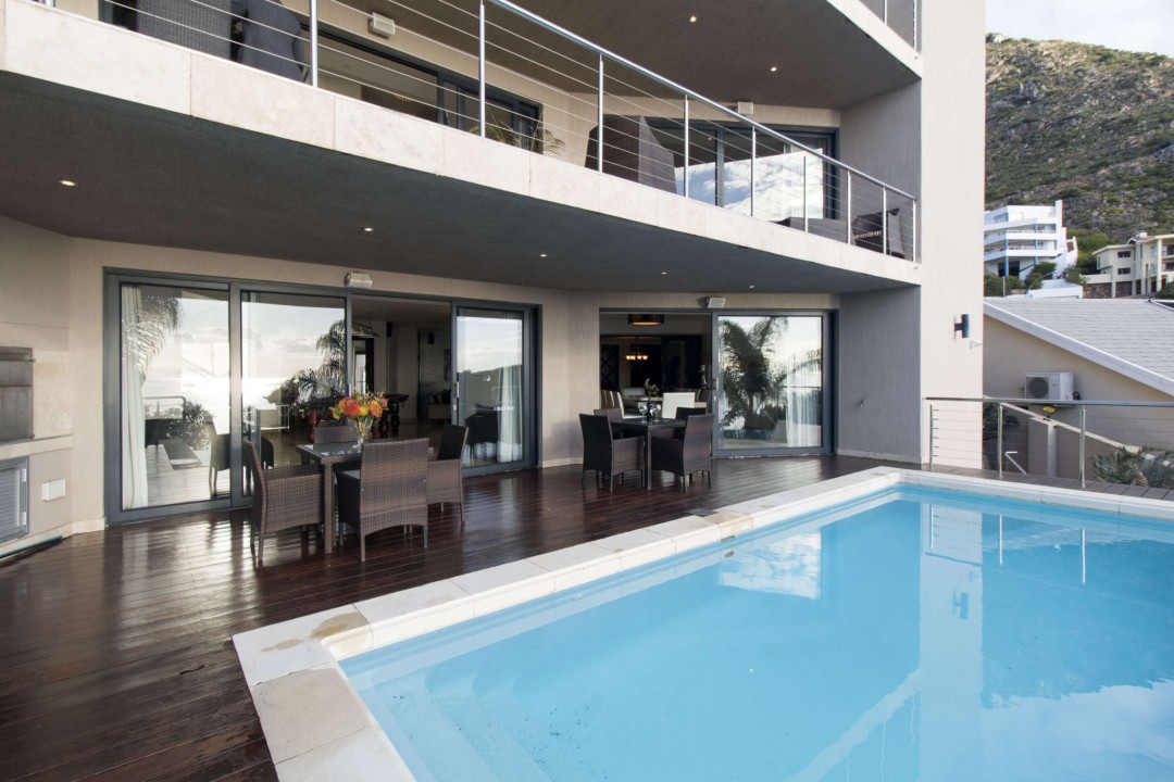Welcome to Villa Lapama! This impressive vacation home is perched on the mountain side of Gordon’s Bay’s most affluent neighbourhood. This property is a nature lover’s dream, with an abundance of flowering fynbos plant species, and amazing unobstructed 180 degree sea and mountain scenes.