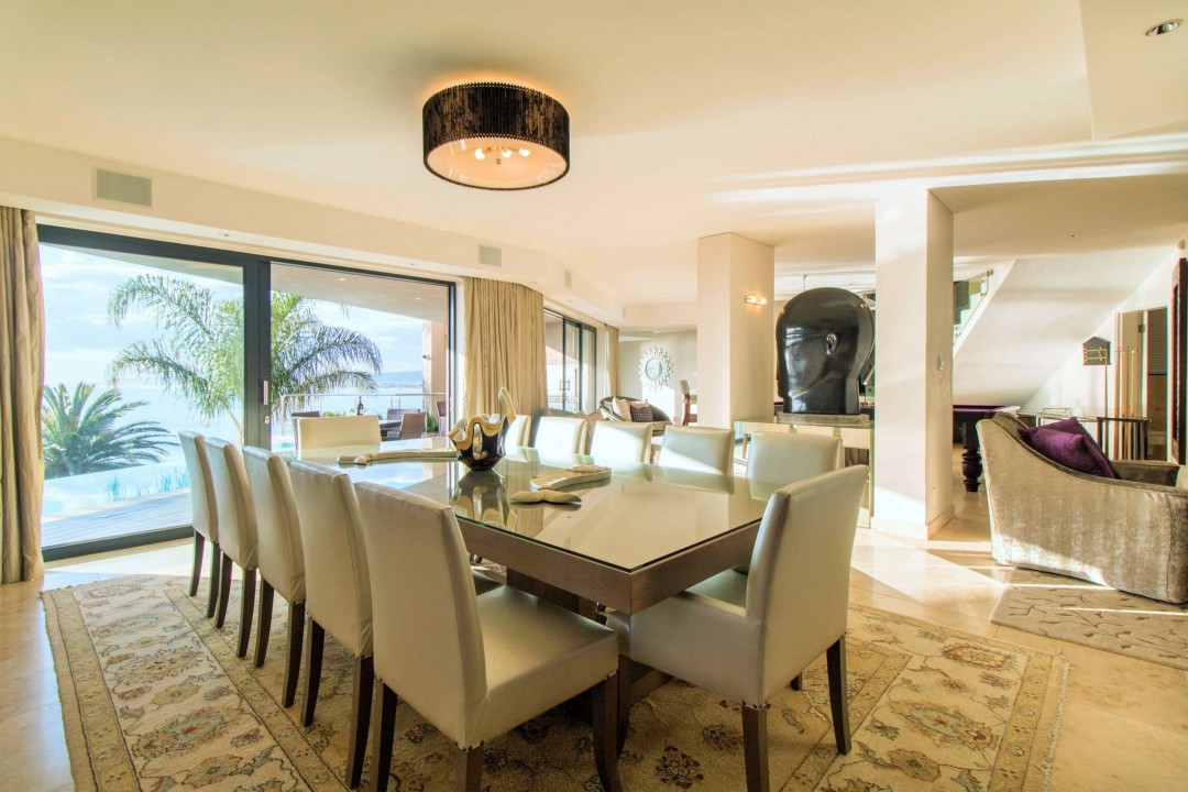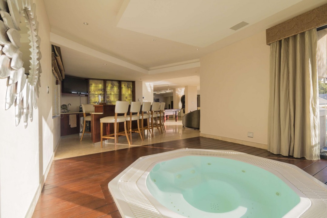 The entertainment area on the ground level boasts a full size snooker table, Jacuzzi bar area, infinity swimming pool, indoor and outdoor dining, as well as a family TV room.Surround sound systems in all areas, air conditioners, TV’s in all rooms, temperature controlled wine cellar/tasting room.