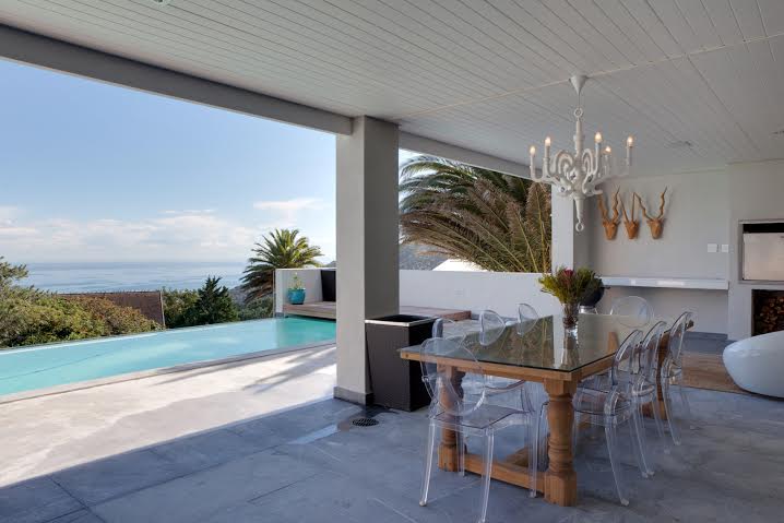 • Pool • Sun loungers, umbrella & outdoor lounge • 8 seater outdoor dining table • Partial sea views • Weber braai and built-in braai – wood fired