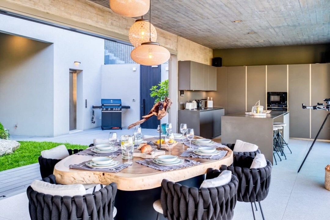Arrive via a secure, tag-access elevator and step into a serene indigenous garden—an unexpected, tranquil welcome that immediately sets the tone for your stay. Floor-to-ceiling glass doors connect the lush garden to the open-plan living area, creating a breezy flow between the interior spaces and the surrounding coastal landscape.