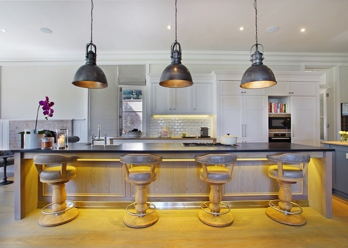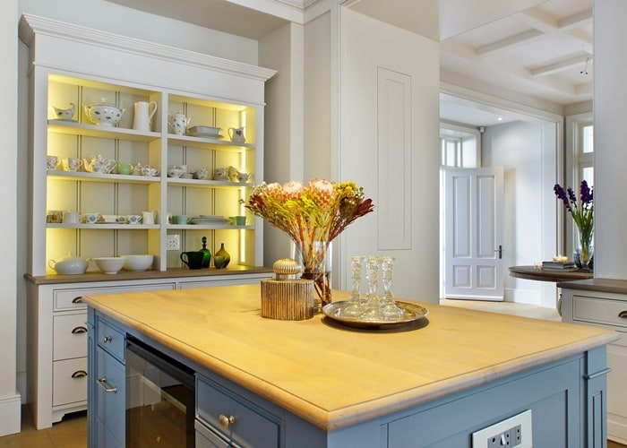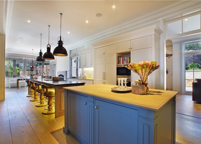 The well-equipped open plan, eat-in kitchen is fitted with Miele appliances including a washing machine, tumble dryer and dishwasher. This space invites families to gather together while preparing meals in the two ovens. One is an eye level electric oven and the second a large electric oven with gas hob. The two integrated fridge/freezers allow for plenty of food storage space. There is also a separate laundry and scullery.