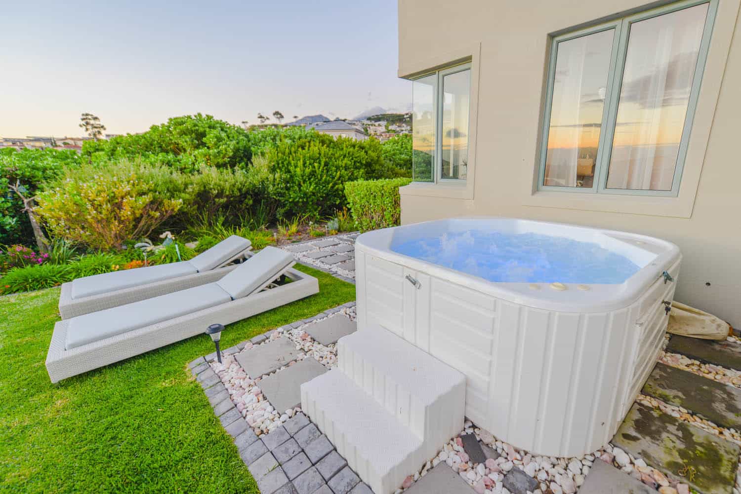 Large built-in bbq and outdoor jacuzzi with sea and mountain views.