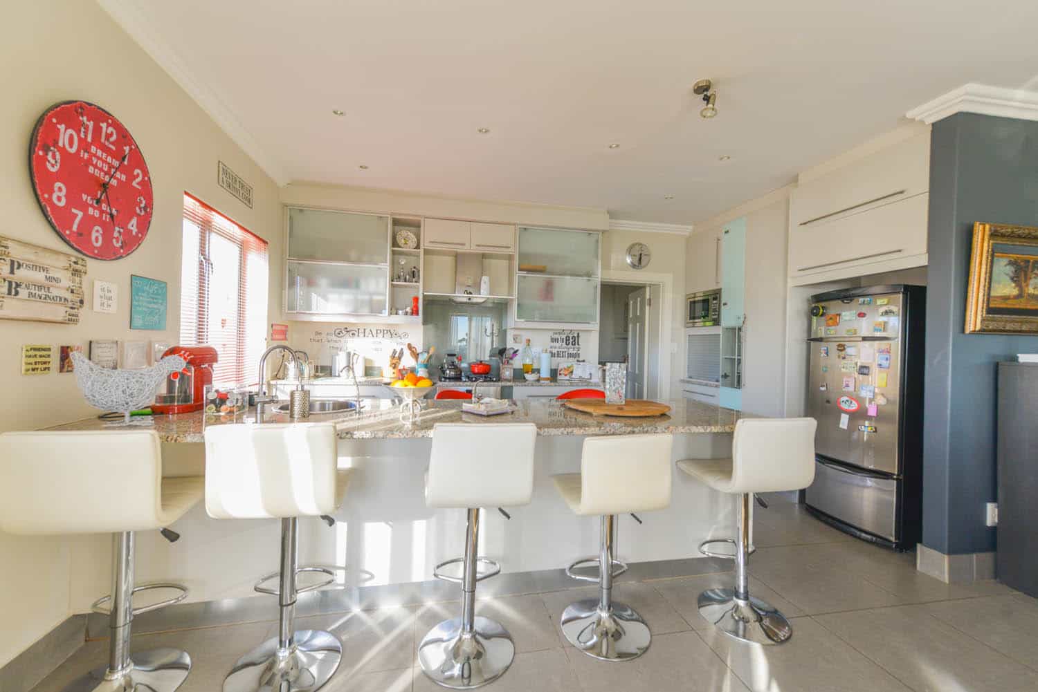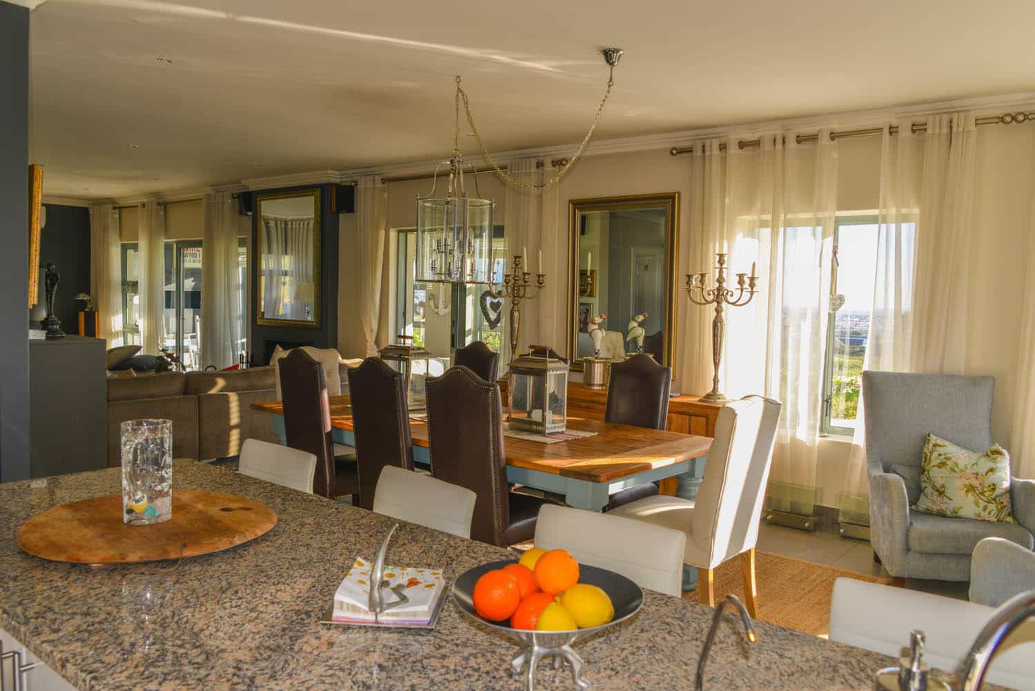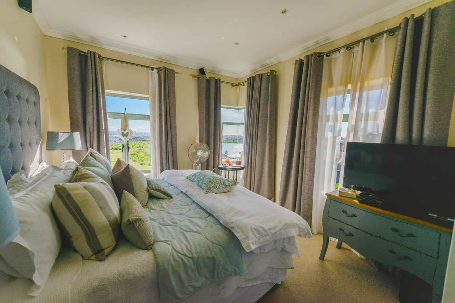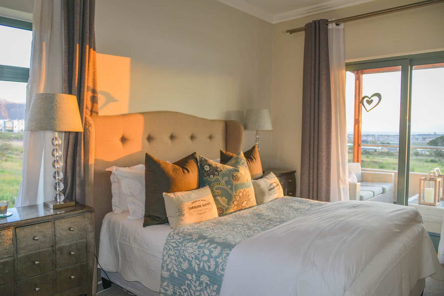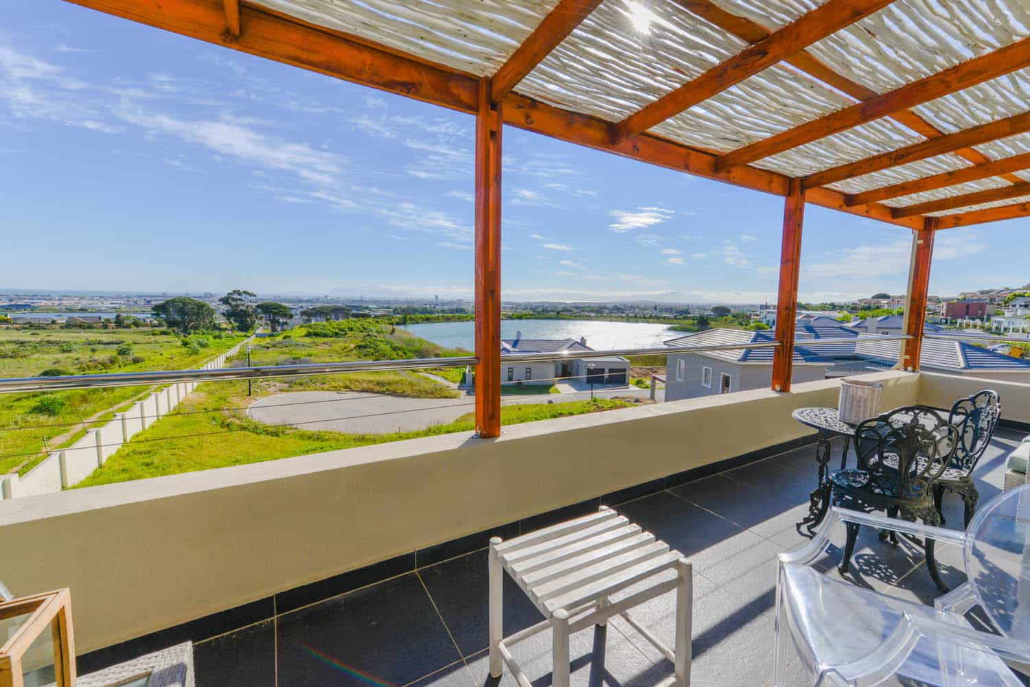 Situated on the edge of a tranquil lake with vast sweeping views from the Hottentots mountains, over False Bay and all the way to Table Mountain in the distance, this villa will only amaze you from the moment you step through the doors. A 3-bedroom 3-bathroom double story home that promises a holiday filled with opulent pleasures and luxurious relaxation. This villa is situated on the edge of the village, right on a serene lake, and in a secure estate but you will feel as if you are in the countryside. On a good day your will see all the way to Cape Point and experience sunsets that will create unfathomable memories.