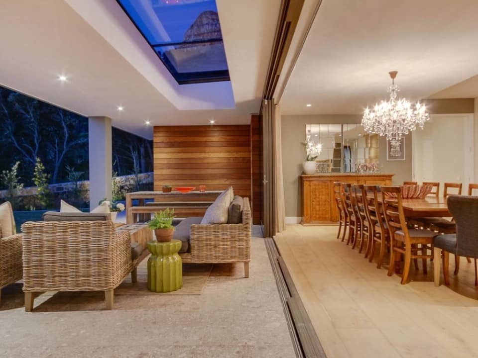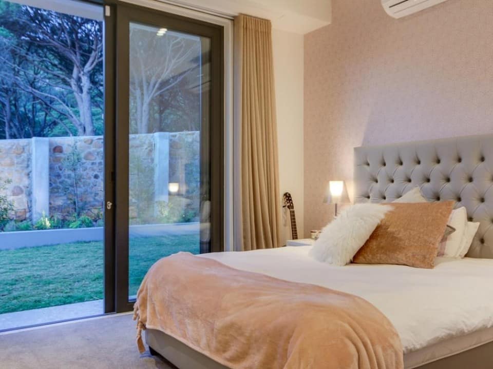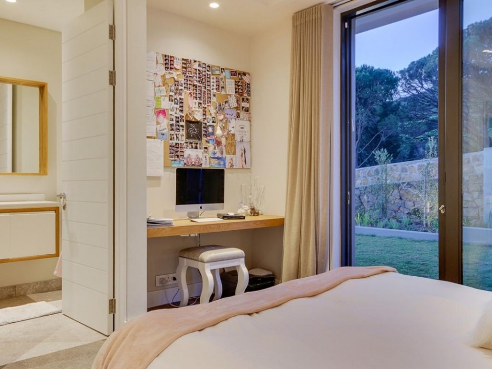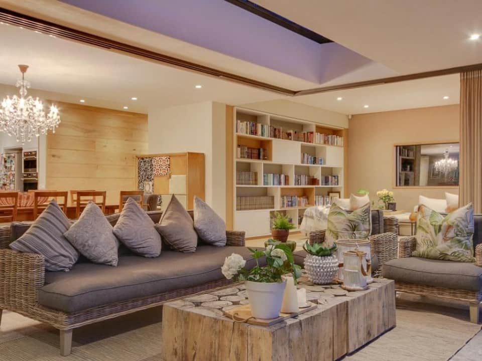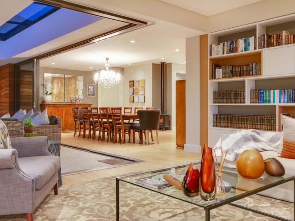 One entire wall filled with books, while the opposite wall has a flat screen TV and a gas fireplace, great for cooler evenings when you just want to relax. Outside you will find a lovely spacious garden with a swimming pool, loungers and comfortable couches. The covered patio lounge offers outdoor dining for 8 guests. From the kitchen, you can also access a small courtyard with a gas BBQ and outdoor dining for 6 guests.