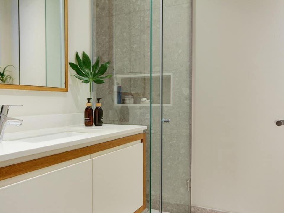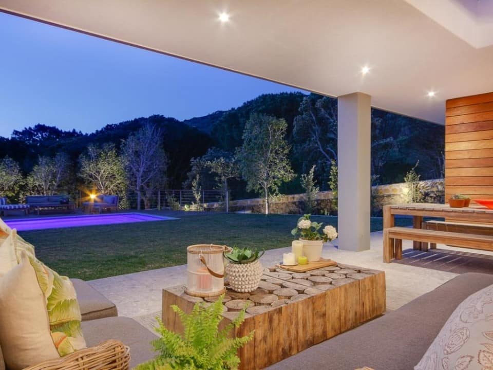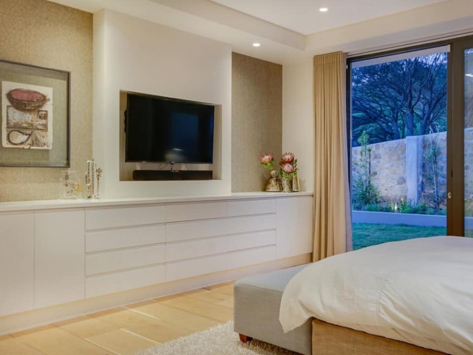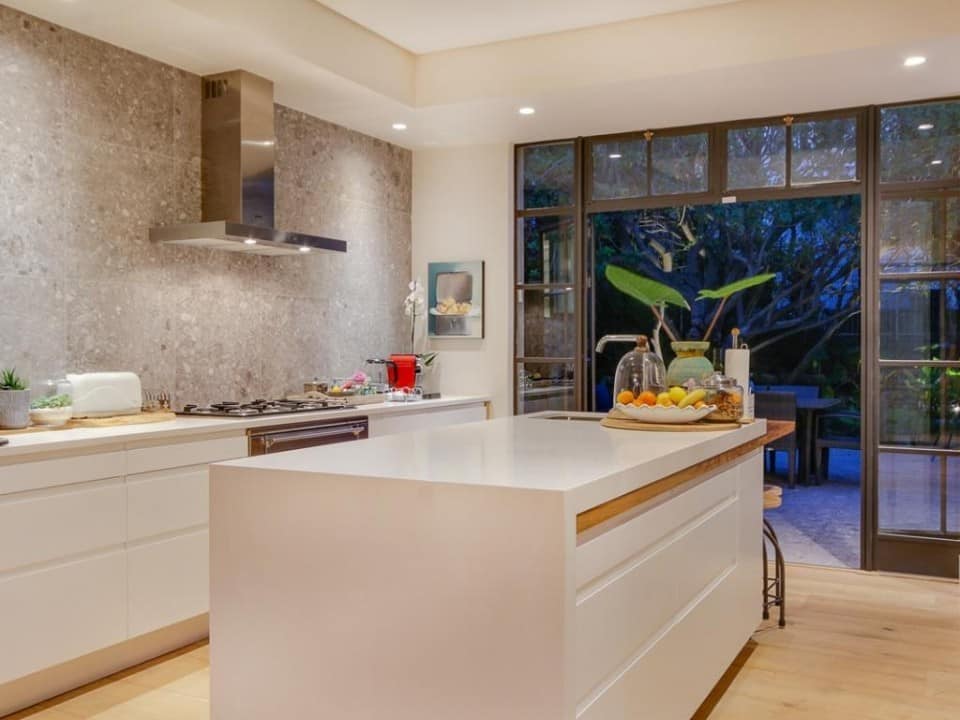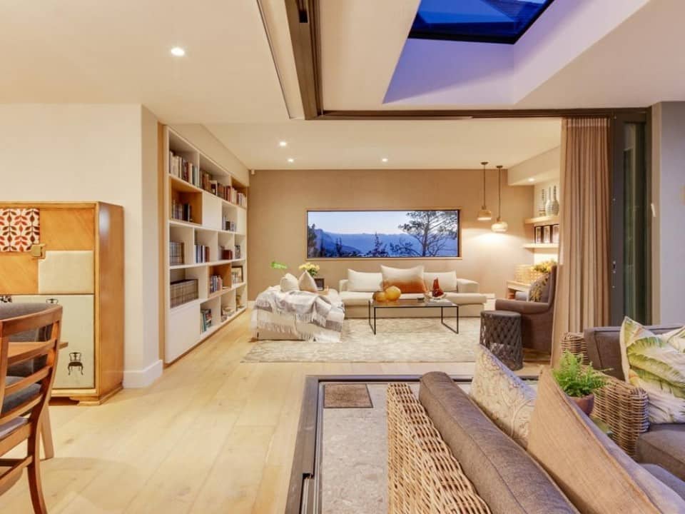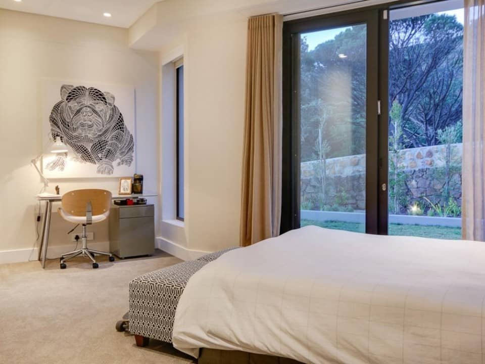 One entire wall filled with books, while the opposite wall has a flat screen TV and a gas fireplace, great for cooler evenings when you just want to relax. Outside you will find a lovely spacious garden with a swimming pool, loungers and comfortable couches. The covered patio lounge offers outdoor dining for 8 guests. From the kitchen, you can also access a small courtyard with a gas BBQ and outdoor dining for 6 guests.