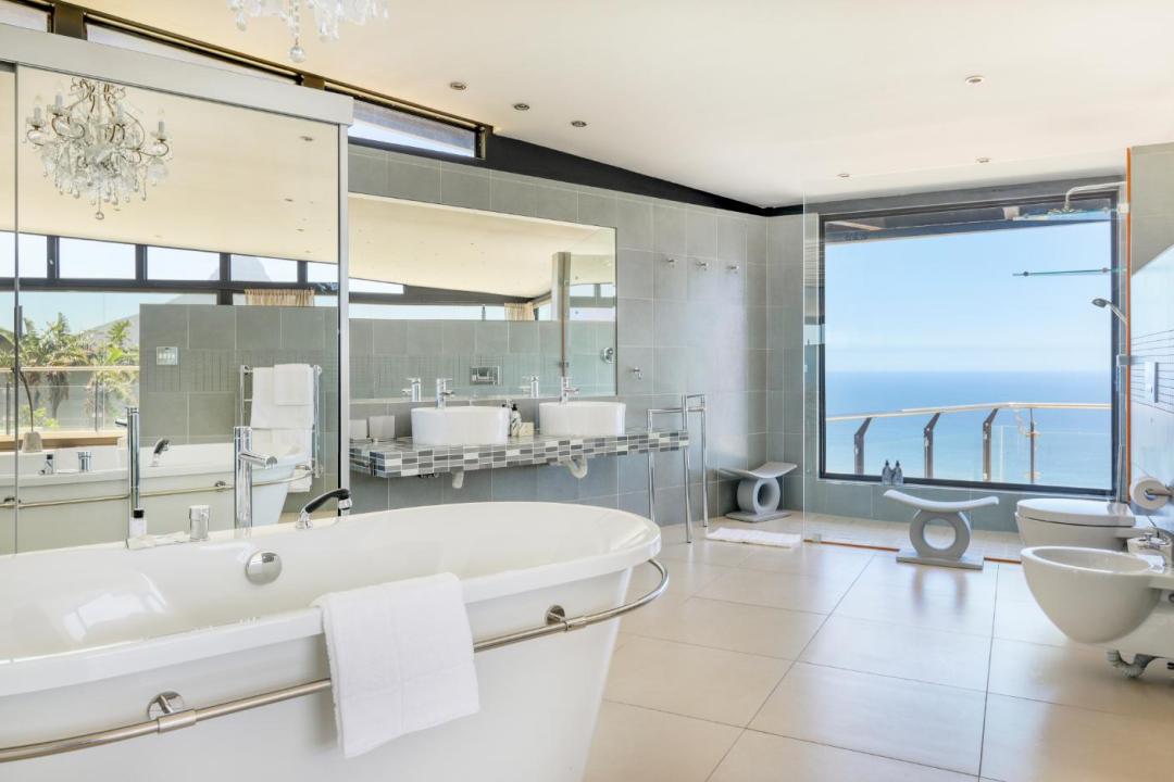 Perched above Camps Bay, Villa Sol is a masterpiece of luxury and elegance, offering an unrivaled 180-degree view of the Atlantic coastline, Camps Bay, and beyond. With 5 spacious bedrooms, expansive indoor and outdoor living areas, and a sparkling swimming pool that seems to merge with the ocean horizon, this villa promises an unforgettable stay.