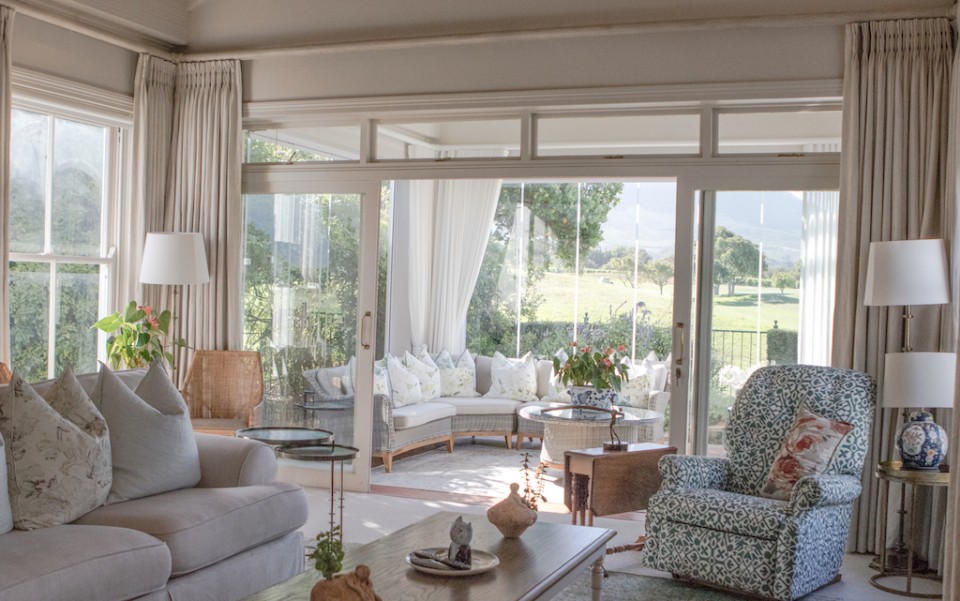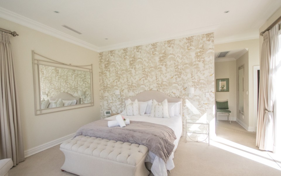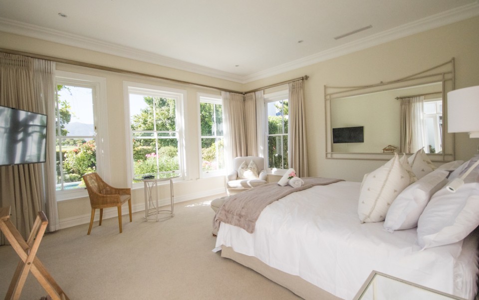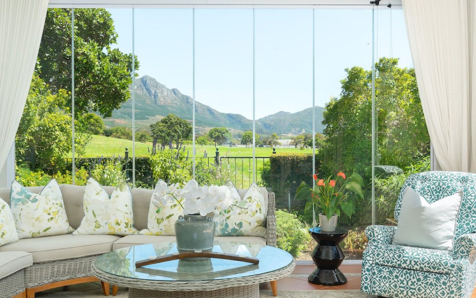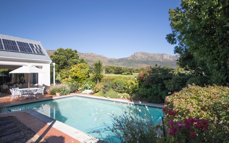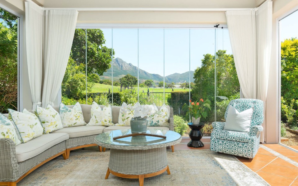 Fully immerse yourself in an elegant and classic Cape lifestyle at this gracious 3-bedroom Steenberg Golf Estate villa. The vineyards, oak-tree lined lanes and the magnificent Steenberg Mountain range invites you to revel in the best the Cape Winelands has to offer. Overlooking a golfing green, this special residence is bathed in natural sunlight, bright airy spaces, and surrounded by a picture perfect English country style garden. Original artworks grace the villa, adding a special touch to the plush and luxurious interior decor. Natural tones with pops of colour refresh every space with life. Offering 3 double en-suite bedrooms, complete with jacuzzi baths, there is ample space to accommodate 6 guests comfortably. Get your work done in the private study, complete with an office desk and uncapped WIFI to ensure you’re connected at all times. Our amazing chef Esther is included in the rate to cook scrumptious meals for you 5 days a week.