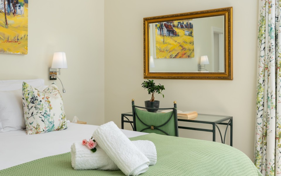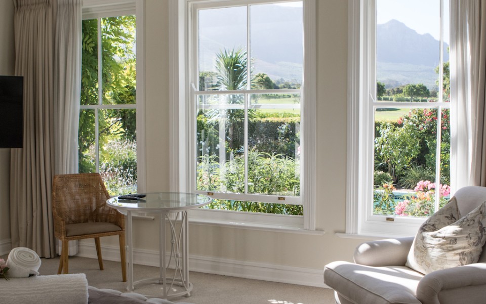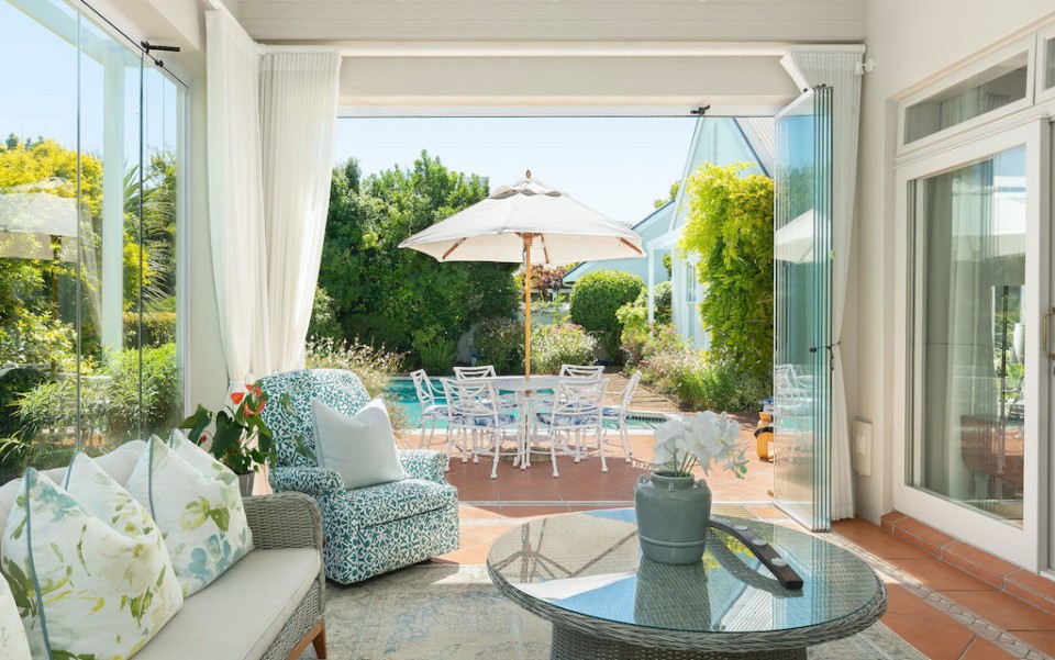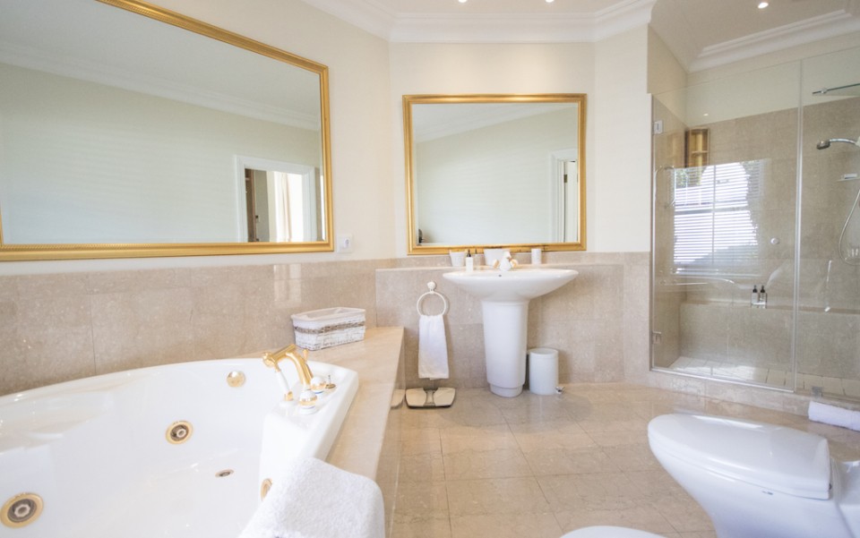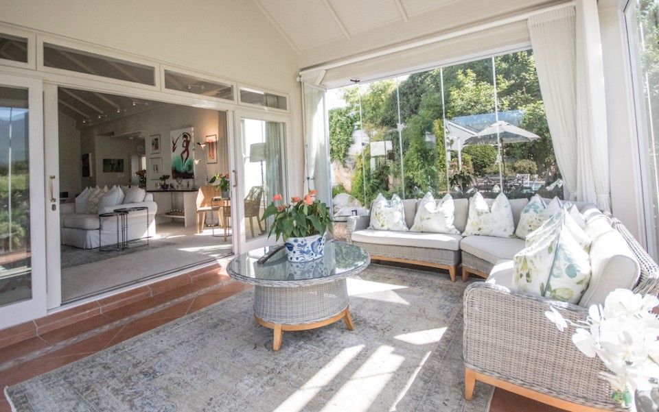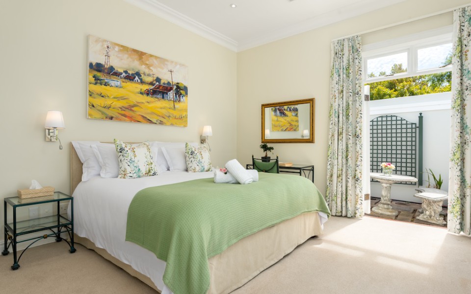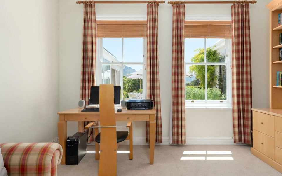 Fully immerse yourself in an elegant and classic Cape lifestyle at this gracious 3-bedroom Steenberg Golf Estate villa. The vineyards, oak-tree lined lanes and the magnificent Steenberg Mountain range invites you to revel in the best the Cape Winelands has to offer. Overlooking a golfing green, this special residence is bathed in natural sunlight, bright airy spaces, and surrounded by a picture perfect English country style garden. Original artworks grace the villa, adding a special touch to the plush and luxurious interior decor. Natural tones with pops of colour refresh every space with life. Offering 3 double en-suite bedrooms, complete with jacuzzi baths, there is ample space to accommodate 6 guests comfortably. Get your work done in the private study, complete with an office desk and uncapped WIFI to ensure you’re connected at all times. Our amazing chef Esther is included in the rate to cook scrumptious meals for you 5 days a week.