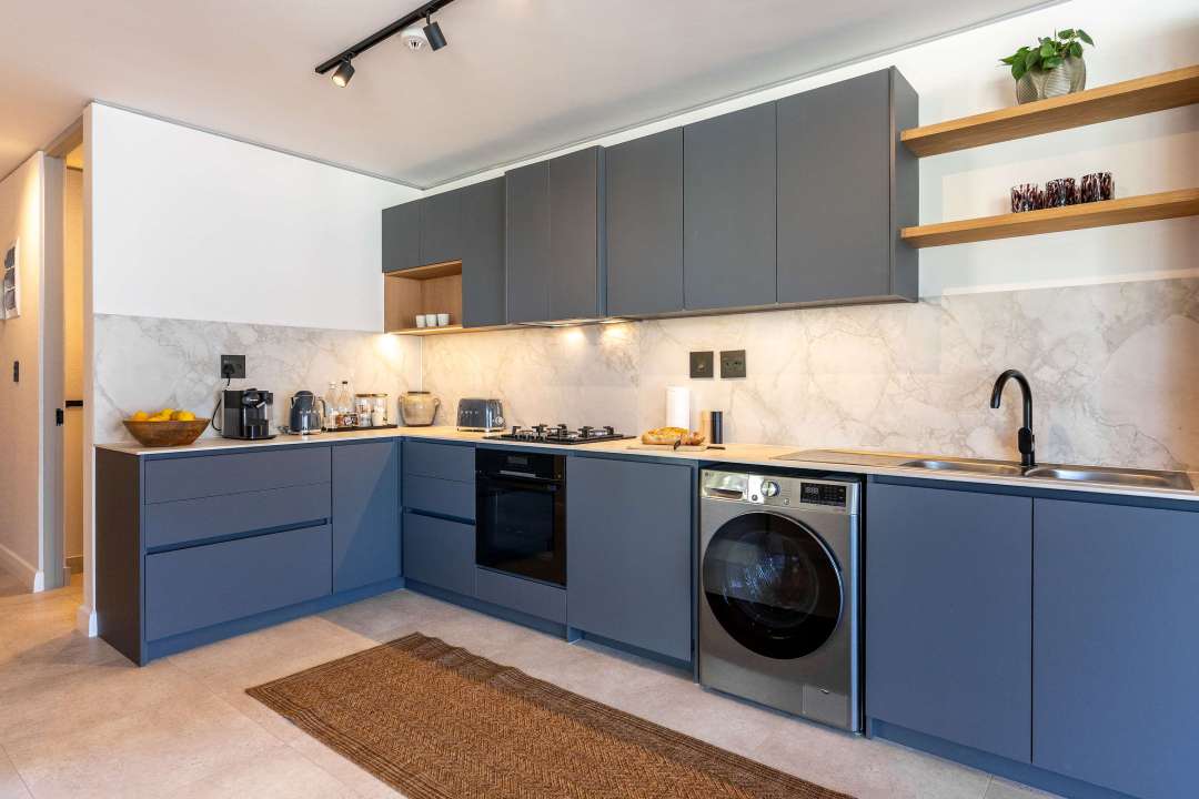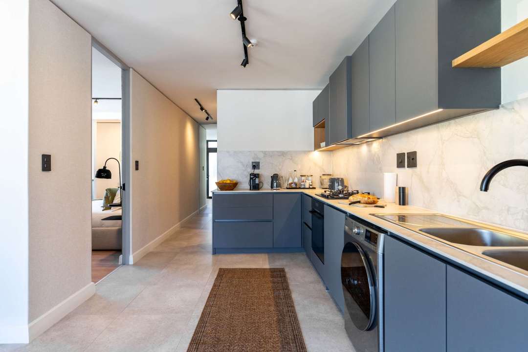 The sleek, fully equipped kitchen is ready for anything – from casual breakfasts to home-cooked dinners. Share meals around the chic dining table, or step out and discover the rich culinary scene just beyond your doorstep.