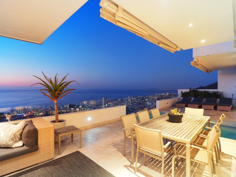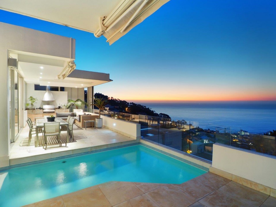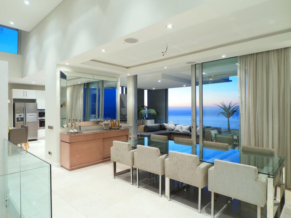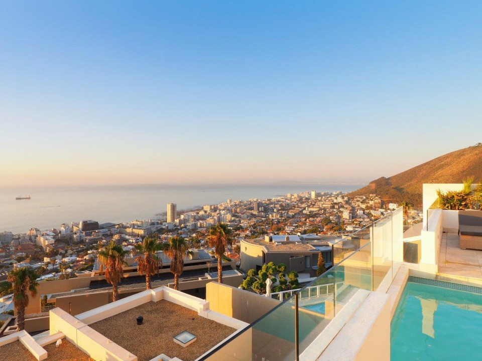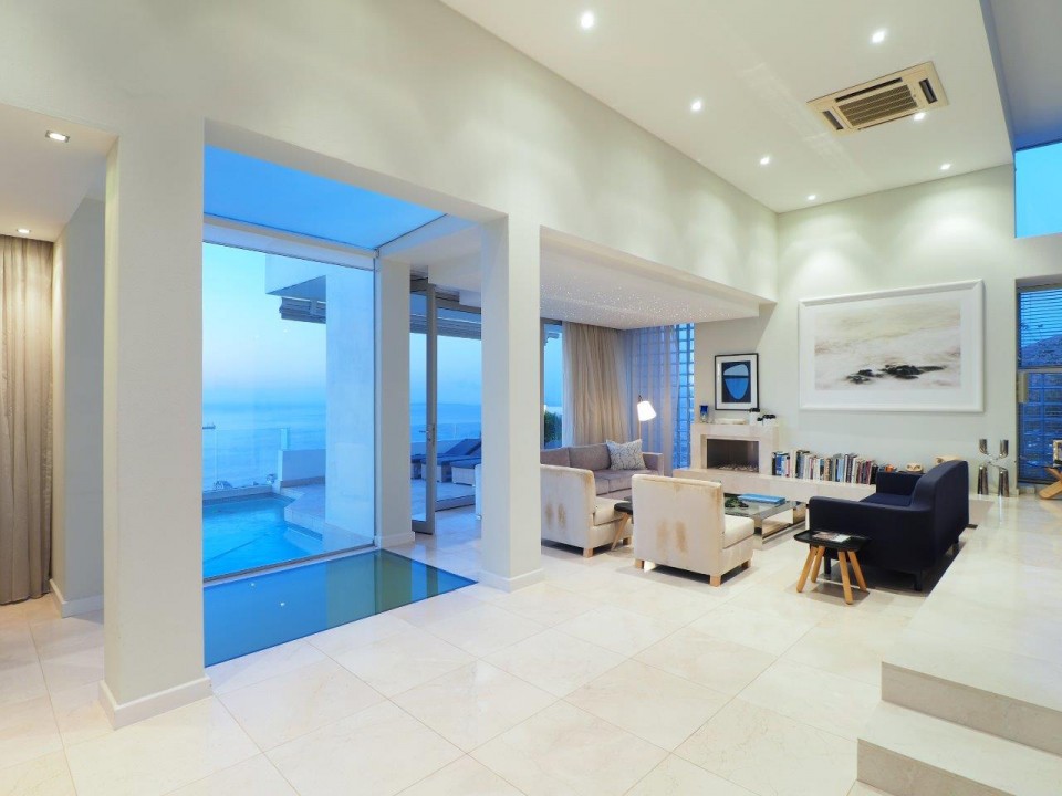 Vogue, a Cape Town Luxury Villa, is also situated in Bantry Bay. Comprising 5 bedrooms, 5 bathrooms, with en suite bathrooms and the potential for a 6th bedroom. This spacious family home is perfectly equipped with a family in mind. Set over 4 levels, Vogue offers two pools, one being on the main living level of the home, with the other being on the study and entertainment level.