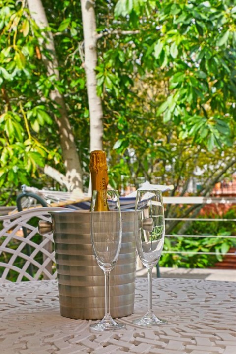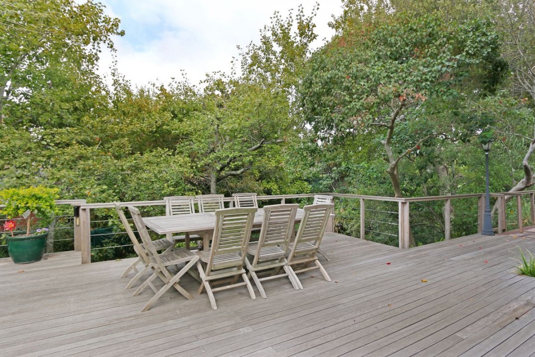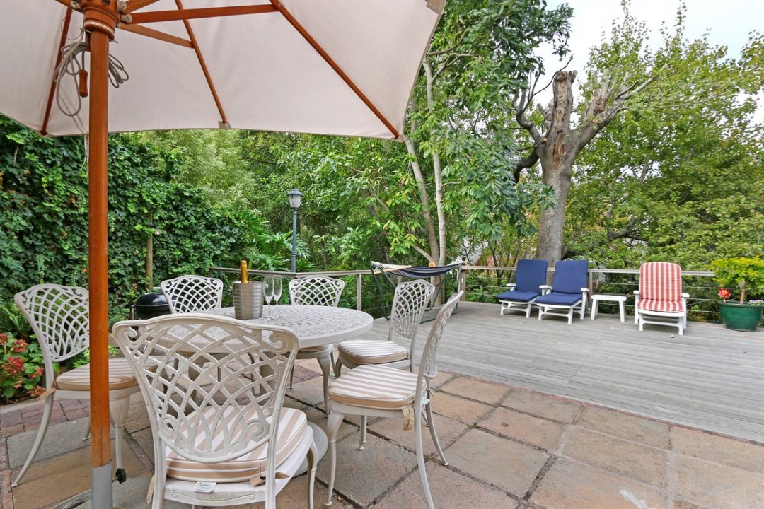 But perhaps its most defining feature is the large deck, accessed via sliding doors, which is surrounded by tall shady trees and has the gentle babbling flow of the Liesbeeck river below – a delight for breakfast in the morning air, long lunches under the umbrella, or evening drinks and BBQ/braai with family and friends. Newlands village is at the base of Table Mountain so within immediate reach of accessible mountains walks; an easy drive the Indian Ocean beaches of Muizenberg, Fish Hoek and the like; or around the mountain to the world famous Atlantic beaches of Clifton, Llandudno and Hout Bay.
