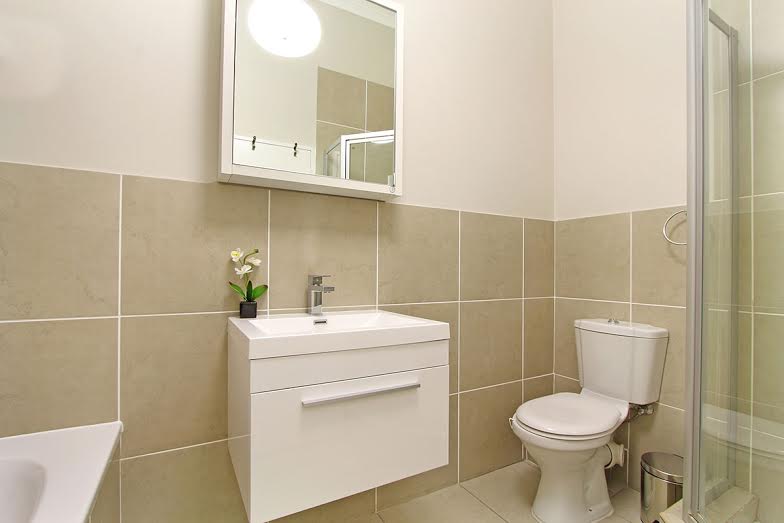 In the main bedroom is a queen-size bed, views of Century City while the second bedroom has twin beds and views of Century City as well. 1 of the bathrooms is en-suite. 1 bathroom comes with a bathtub and shower while the other has a shower only. Children are allowed to stay at Waterstone East P302. Unfortunately, no pets are allowed. Parking in a bay is available while stairs lead to the apartment. The complex in which the rental is situated provides guests with access to a communal pool.
