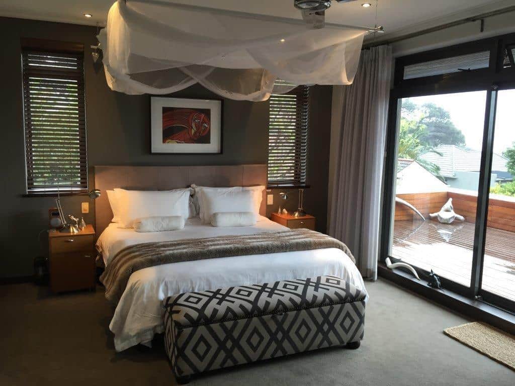Bedroom 1 | Main en suite | King size bed | Deck access thru sliding door | Views of Signal Hill with partial Table Bay views from the Main-en-suite deck.