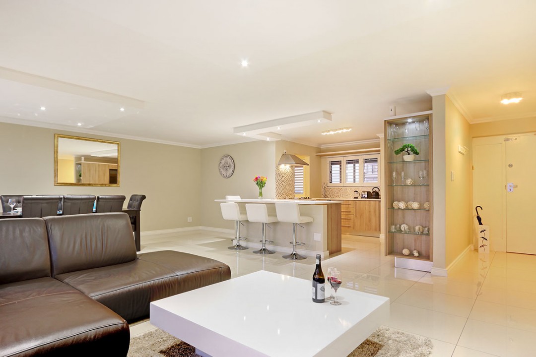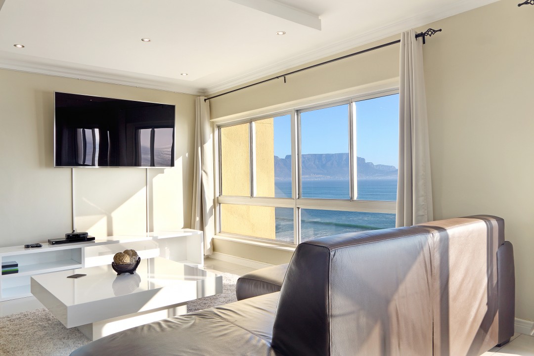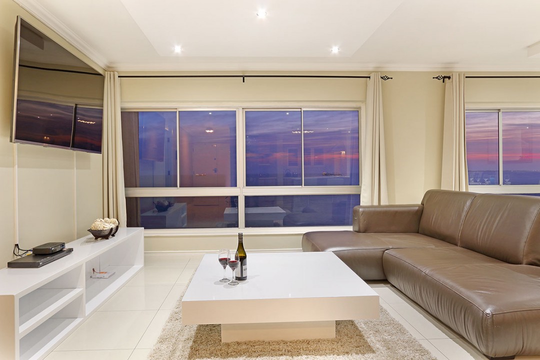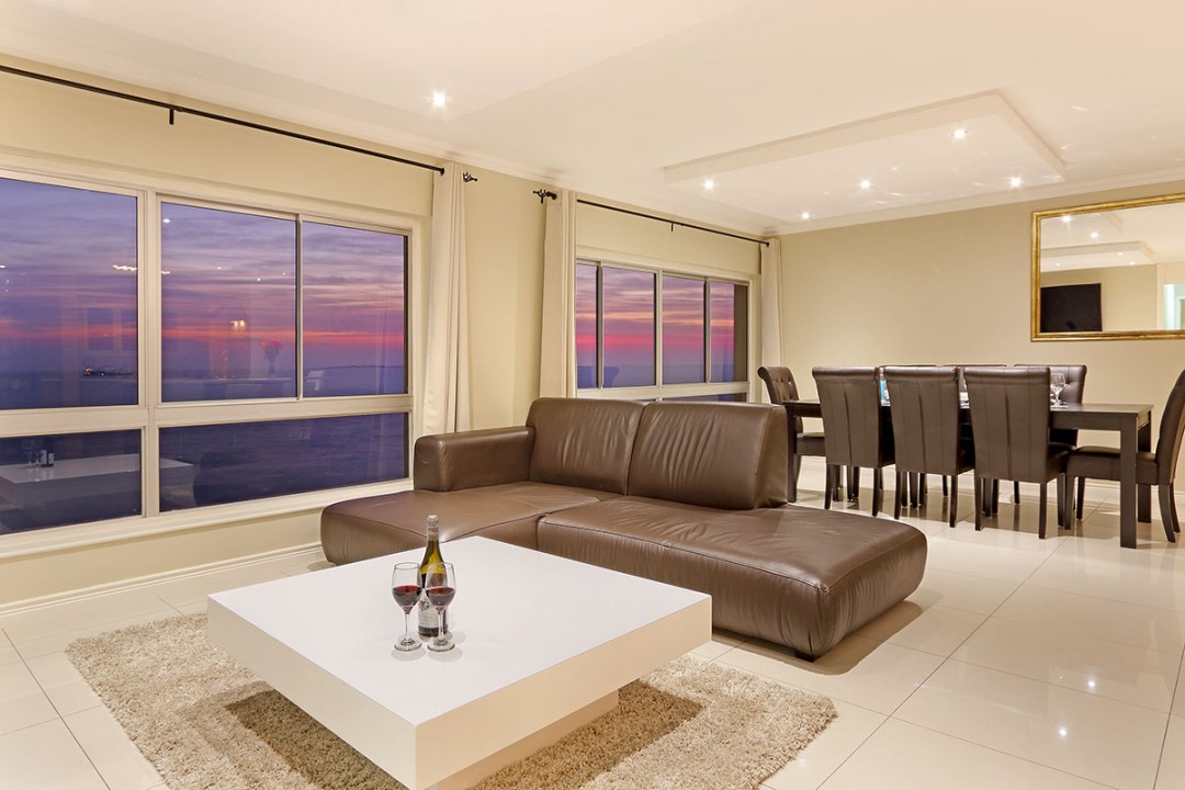 Enjoy the dynamic views of Table Mountain in the morning, watch the kite surfers and beach strollers during the day and take in the most magnificent sunsets with a drink in your hand from your leather couch.