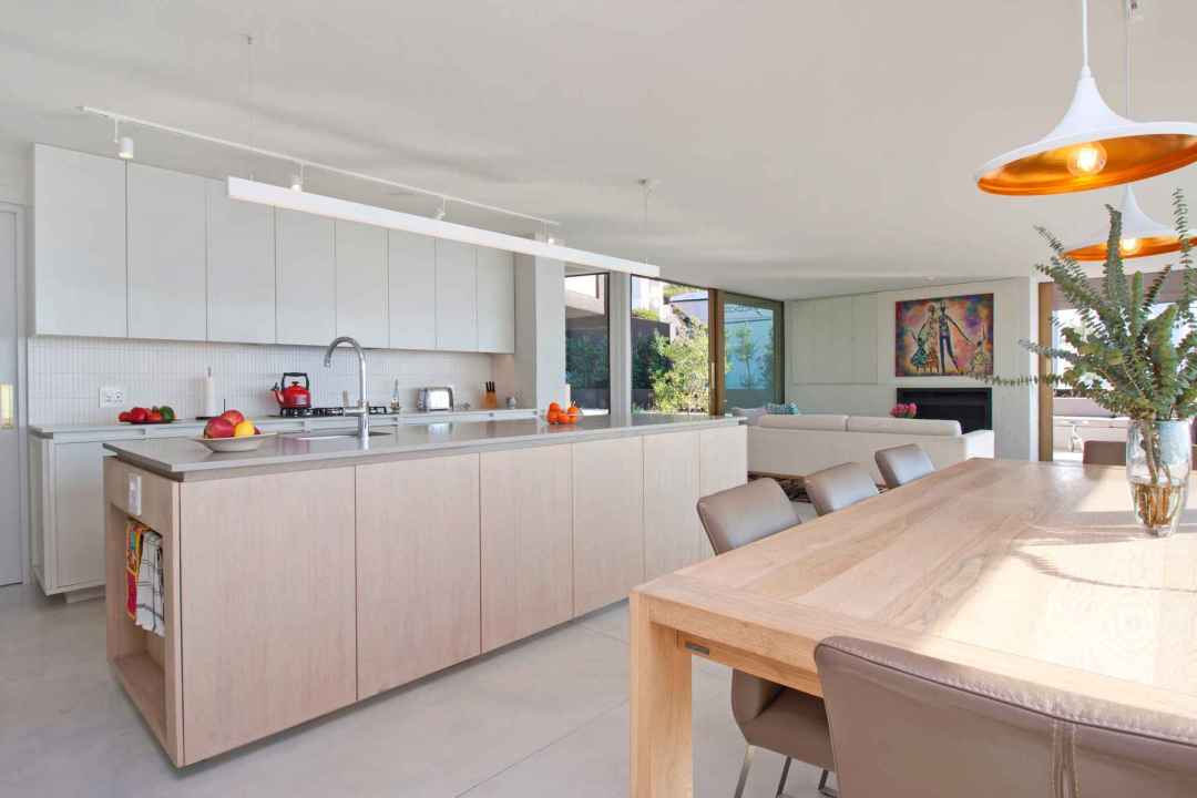 - Middle Level Open-Plan Design: The middle level features an open-plan kitchen, dining, and lounge area, perfect for gathering and enjoying the warmth of the built-in fireplace on cooler evenings. The space seamlessly connects indoor and outdoor living, offering spectacular views across the bay.