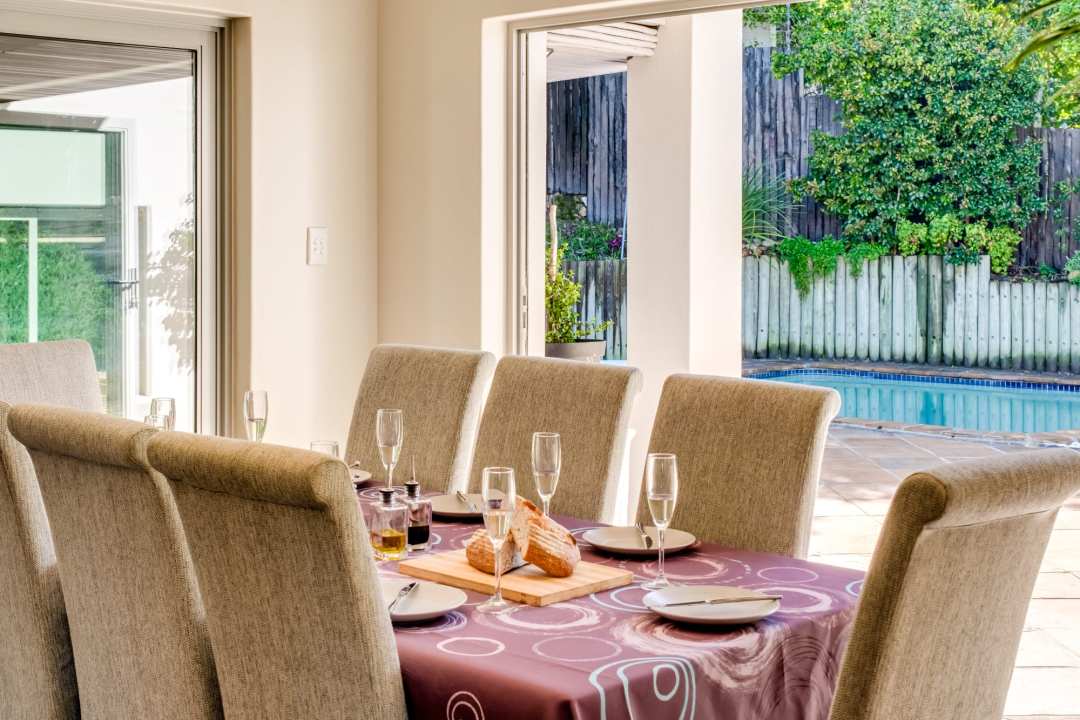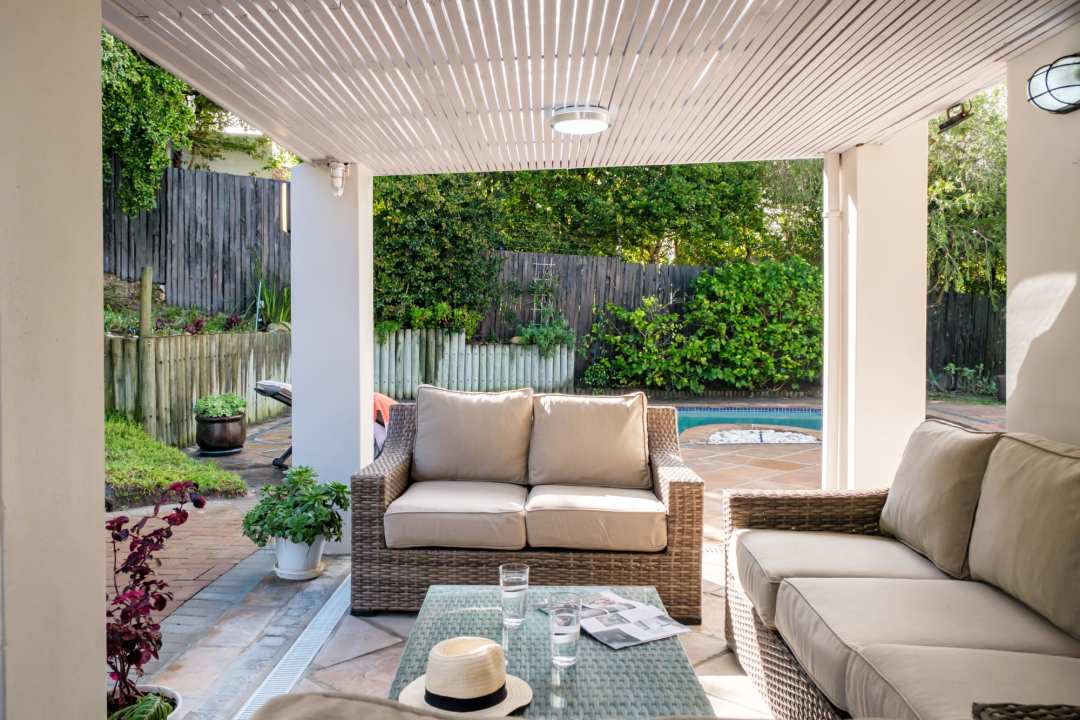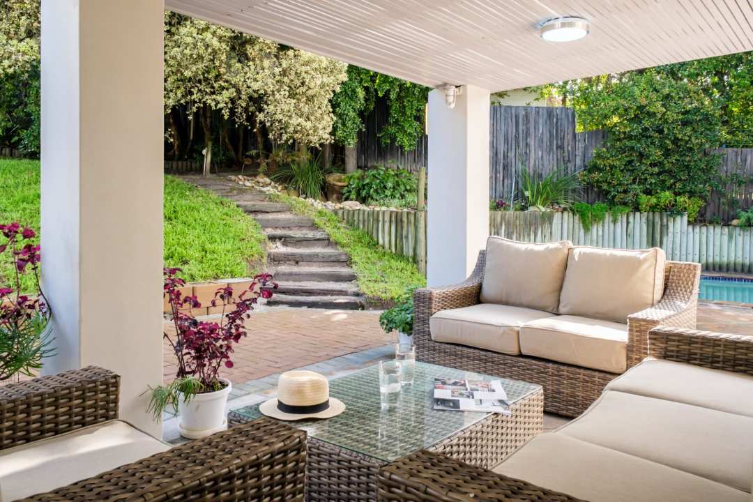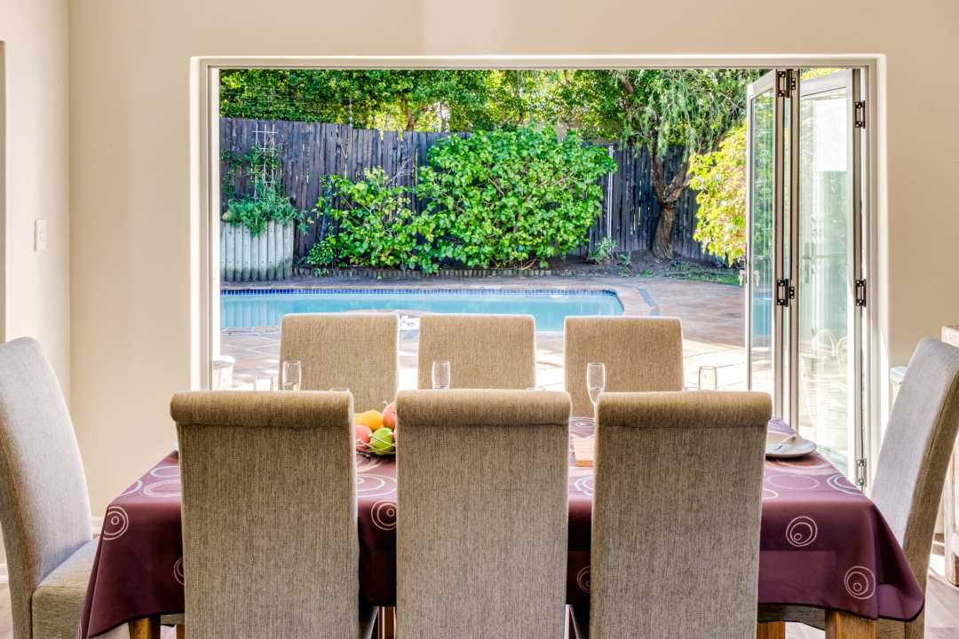 Set within lush gardens, the outdoor area offers a private swimming pool, two BBQ options (gas and wood), a firepit, sun loungers, and alfresco dining for six. Whether sharing meals under the stars, playing a friendly game of ping pong, or simply relaxing by the pool, this space celebrates Cape Town’s sunshine and serenity.