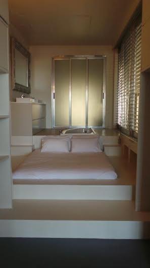 The en-suite master bedroom has a plat formed designed bed with built in bath and sliding doors that open on to a shower room where you can shower and look out at the expansion of the apartment and view. A queen size day bed set in the studio can accommodate 2 with a separate walk-in dressing room to facilitate. It has an open plan dining and entertainment area on to a balcony with outdoor furniture.