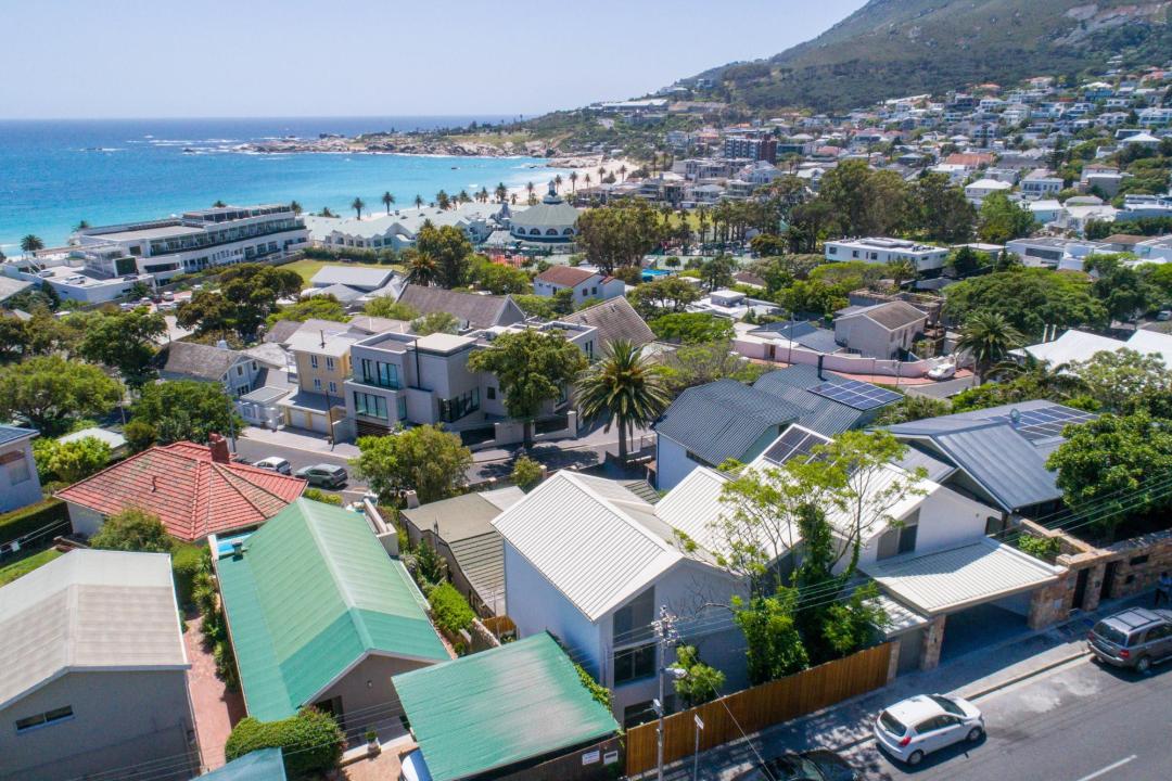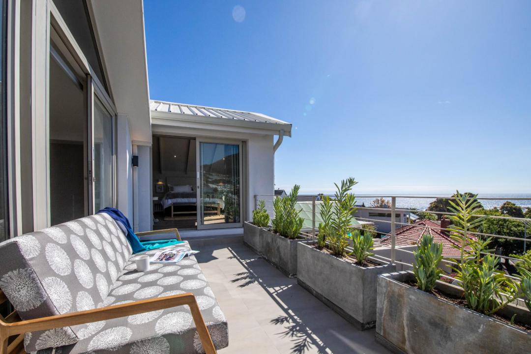Saltwater Villa is a beautifully designed, contemporary holiday home in Camps Bay, and is less than a two-minute stroll to the beach and the vibrant Promenade. With elegant interiors and captivating sea views, this home offers a seamless blend of luxury and coastal charm. The main bedroom features a king-sized bed, private balcony, and an open ensuite with a bath and shower, perfect for unwinding with a view. The additional bedrooms each offer comfortable bedding, en-suite bathrooms, and access to either a balcony or deck, ensuring privacy and relaxation for all guests. The stylish kitchen, equipped with a gas hob, Nespresso machine, and a breakfast bar, opens to a balcony with ocean views. Adjacent, the spacious living and dining area accommodates six and invites you to dine, relax, and soak in the seaside atmosphere. Downstairs, an additional living area with a wet bar leads to the pool deck, creating an ideal space for relaxing. The spacious balcony leading from the main living area offers dining for eight, a bar area, and a gas BBQ, all set against the backdrop of sea views. Saltwater Villa is the ultimate coastal retreat for those seeking tranquillity and elegance by the ocean