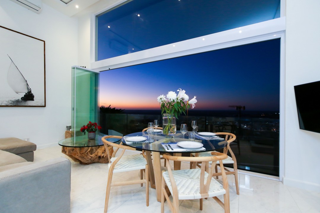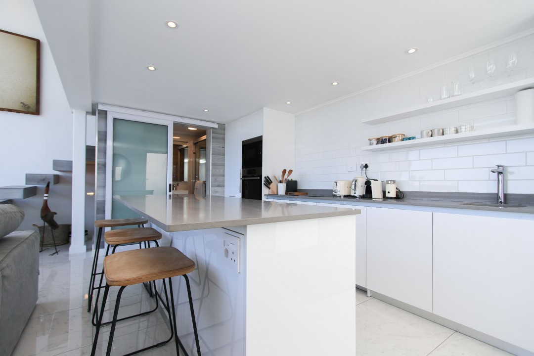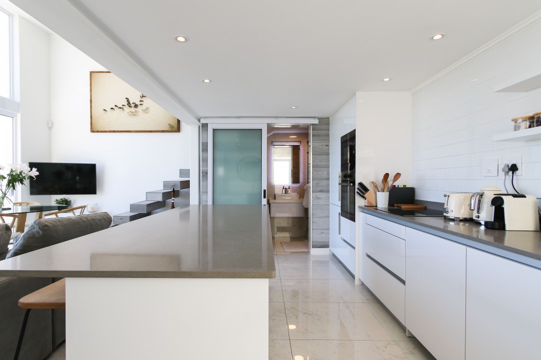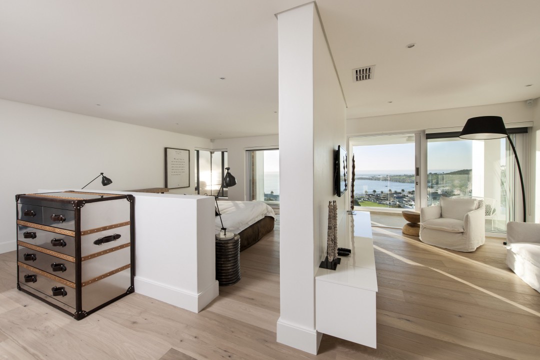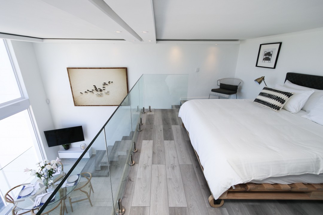 6) STUDIO LOFT | King sized bed, En-suite bathroom, Built-in cupboards, small living room with stunning direct ocean view, Plasma TV & DSTV & open kitchenette, Air-conditioned and heated, Shampoo, soap, towels and linen.
