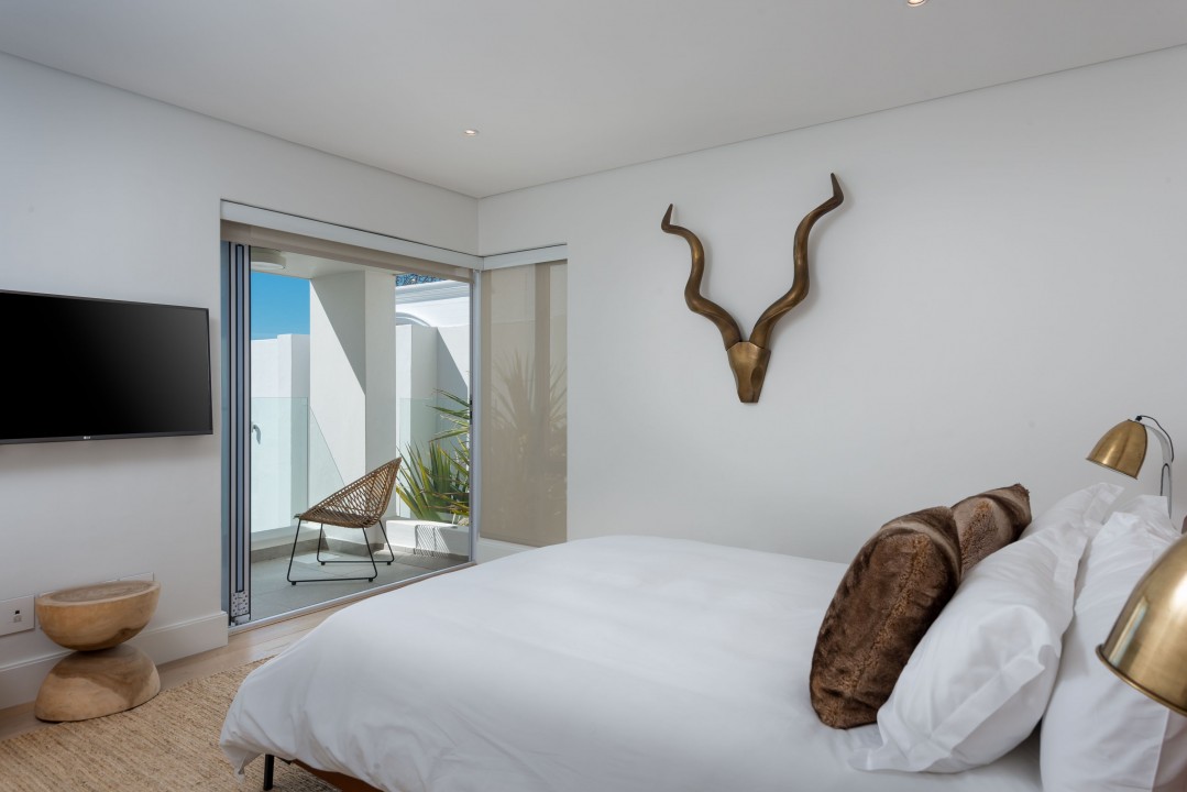 1) SANDPIPER | Master King-sized bed Sweeping views of Camps Bay and Lion’s Head Large outside balcony Separate lounge area with plasma TV & DSTV Huge bathroom with double vanity Double shower Roll-top bath Walk-in dressing room Shampoo, soap, towels and linen Air conditioned and heated