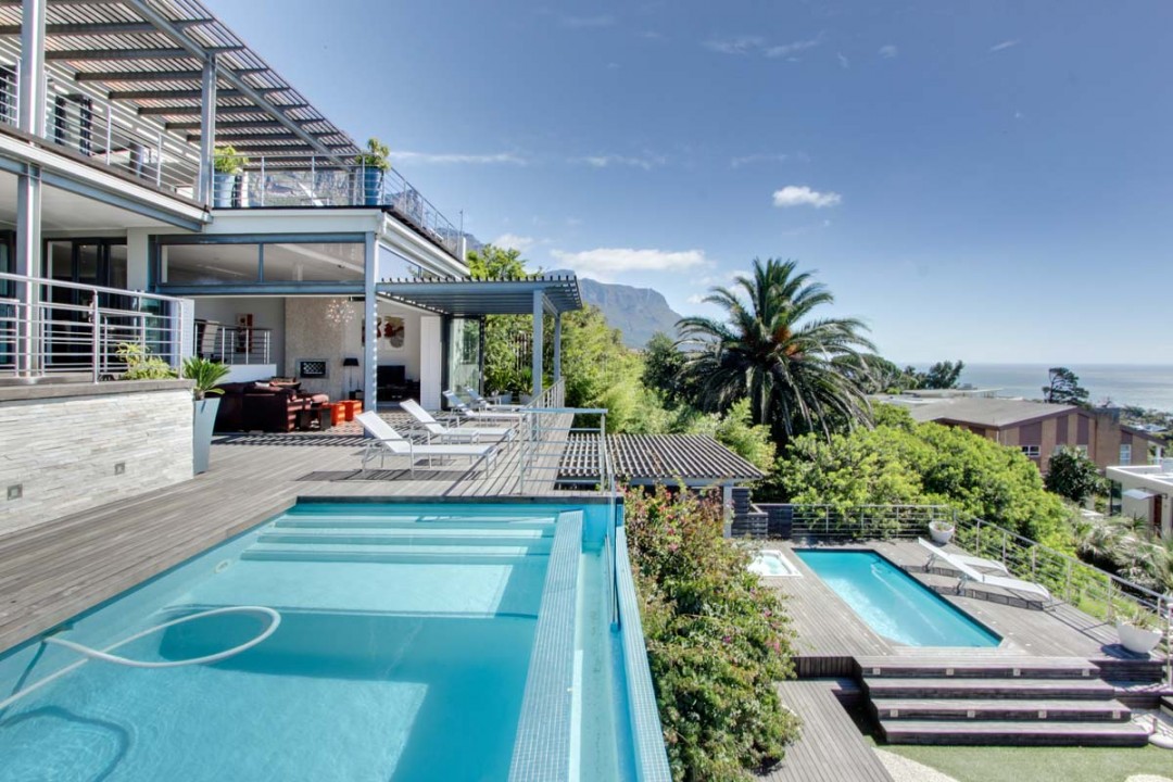 Sea and Rock villa reflects its name as it occupies a mountainside site with superb seascape views over Camps Bay. Uninterrupted views of the ocean with a sunset right in front of you.. This villa is one of a kind in the Camps Bay area. It has 2 Jacuzzis and 2 swimming pools. It spans over 3 levels and every room is sea facing to appreciate and admire nature at its best.