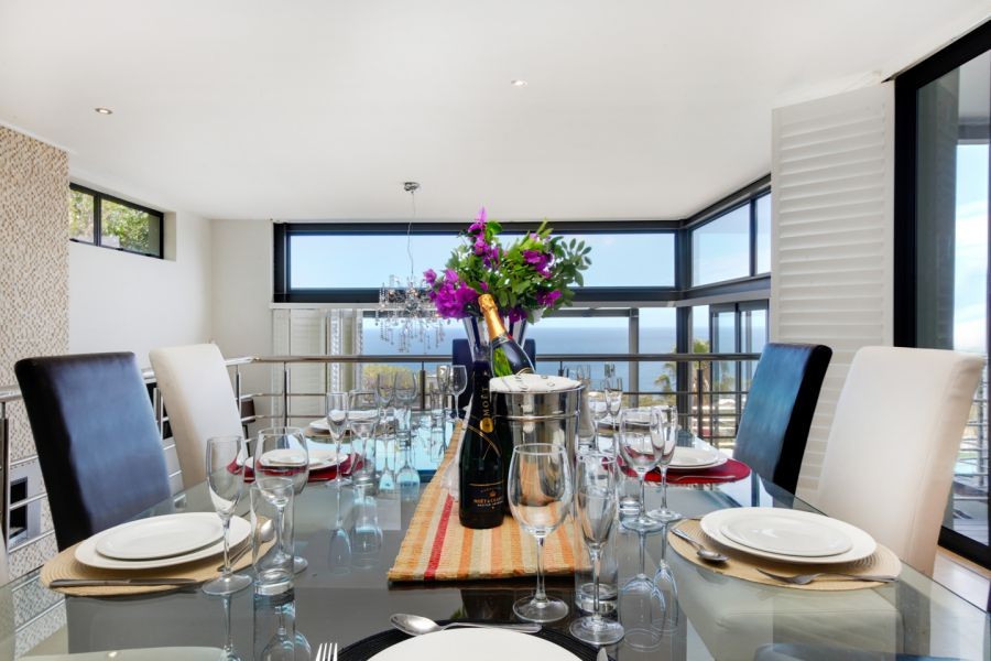 On this deck you will also enjoy ‘bubbles’ in the jacuzzi whilst sipping bubbles of sparkling wine. Having 7 bedrooms and all the luxury required to make your stay an experience of lifetime. Service every day with 2 housekeeping staff and an on site manager who is dedicated to see to the comfort, service and enjoyment of this beautiful villa in our gorgeous suburb of Cape Town.