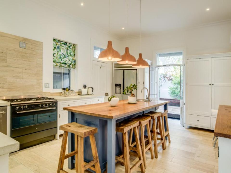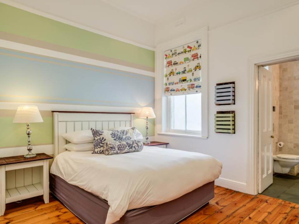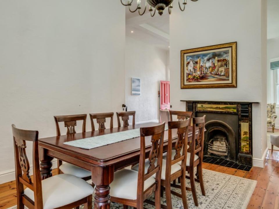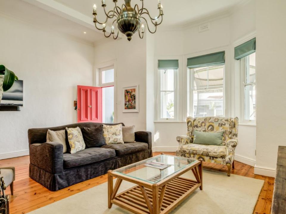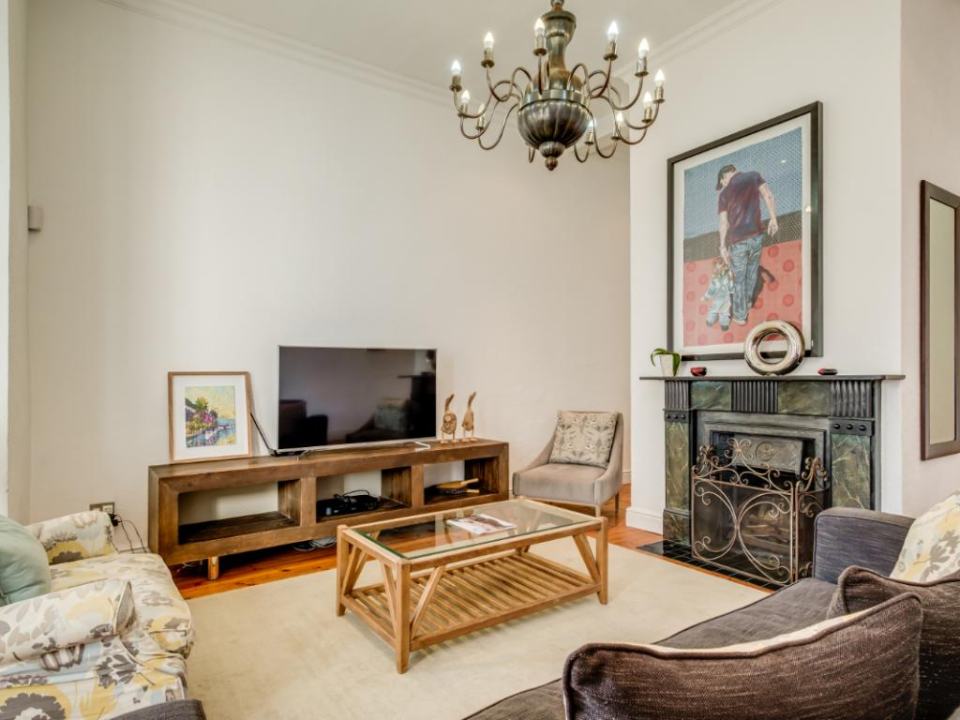 Located on a quiet street between Main Road and High-Level Road in Sea Point, this beautiful Victorian home is the perfect escape into the laid-back lifestyle of Cape Town, whilst still being a short walk to all the action. Upstairs: It comfortably sleeps 6 in three en-suite bedrooms with high ceilings. The main bedroom has a king bed, the second bedroom has a queen, and the kid’s room has two single beds. There is a sunny balcony just outside the bay window of the main bedroom. Downstairs: The living area with a working fireplace and TV, a fully equipped kitchen, and a guest toilet. There is a large balcony in the front of the house where you can enjoy meals. The kitchen leads onto a rolling deck at the back of the property which acts as a secure cover for the swimming pool.