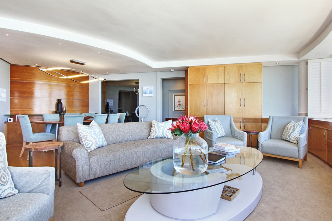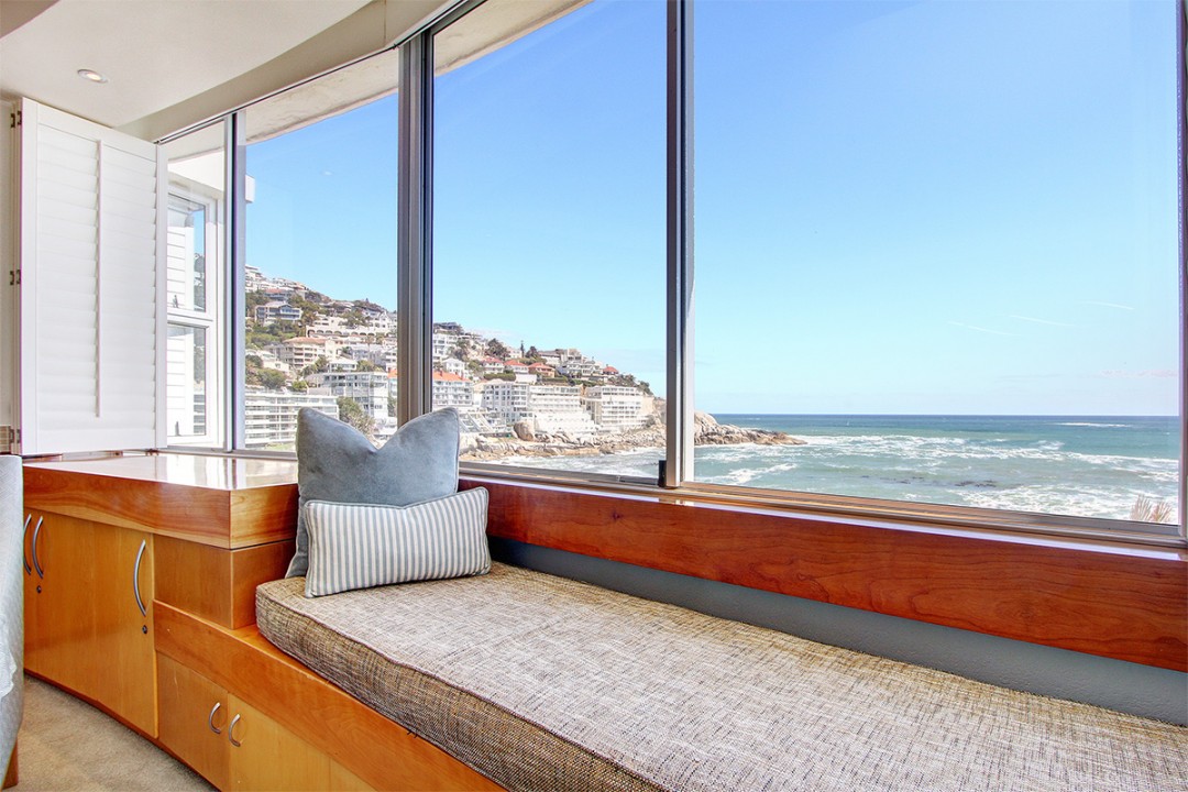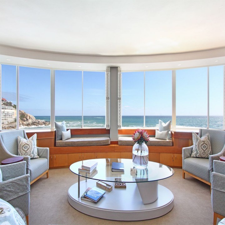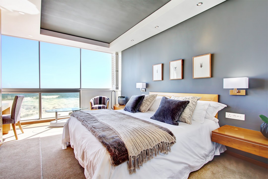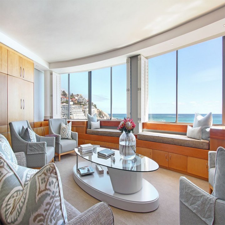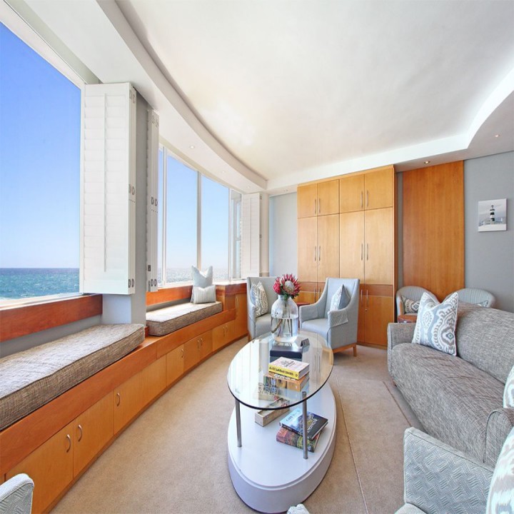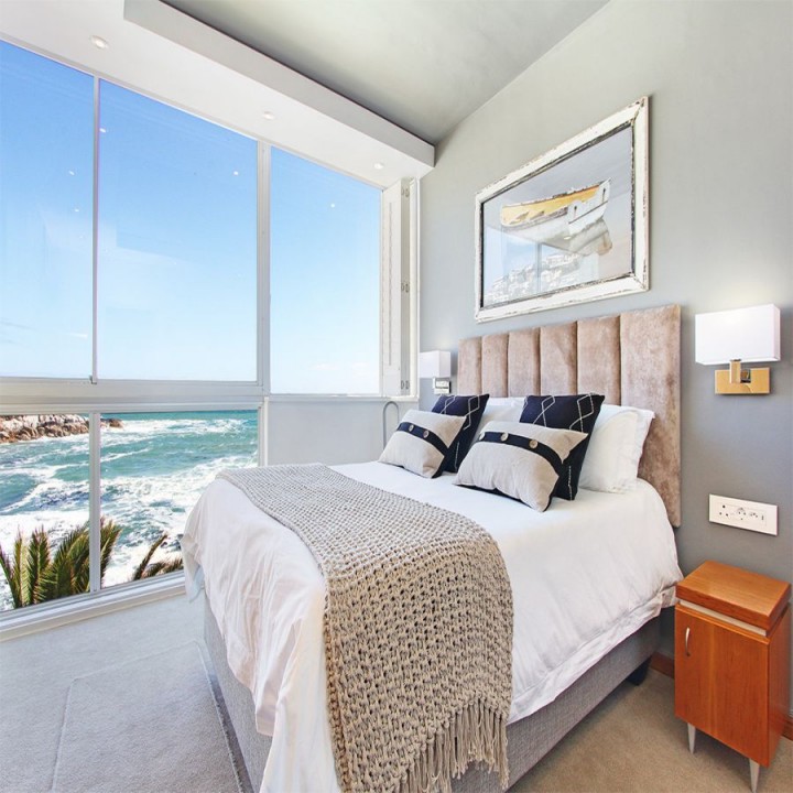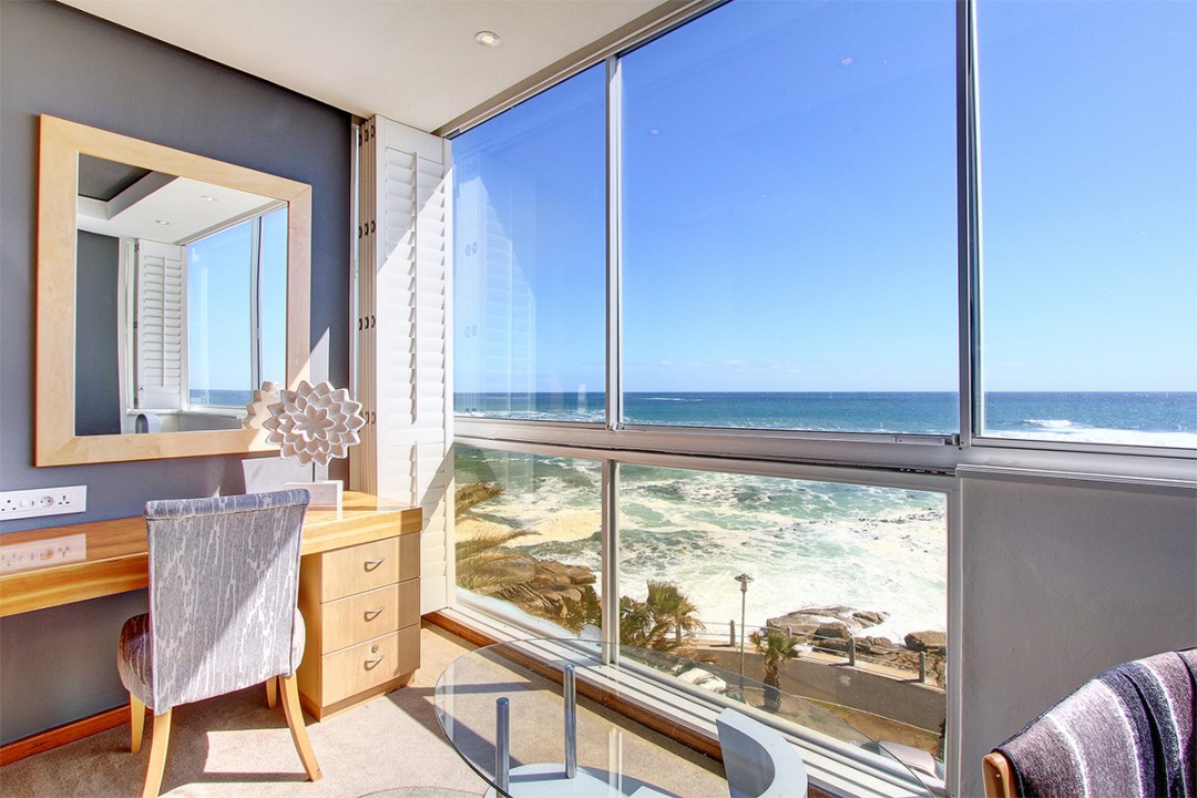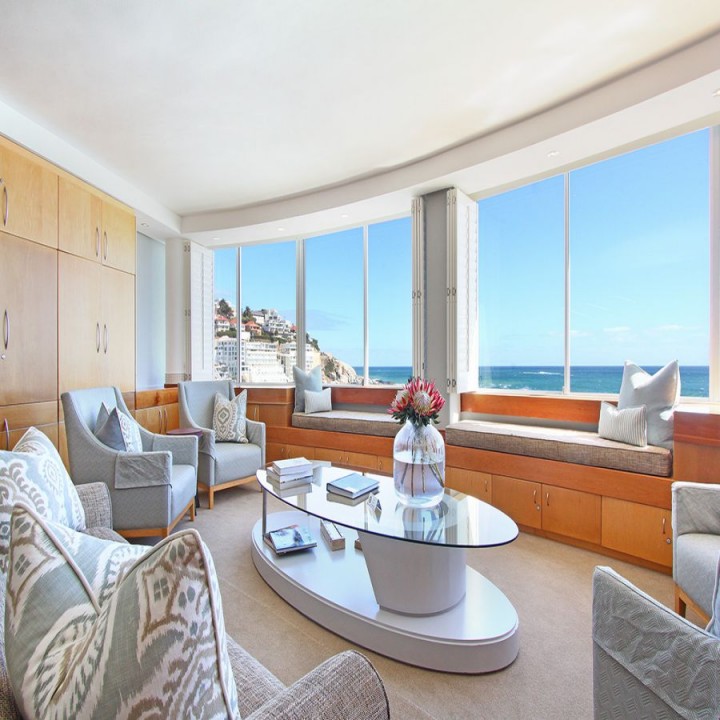 Seacliffe on Two is nestled on a quiet road between Seapoint and Camps Bay. The luxury Bantry Bay apartment is known as a wind-free location and properties in the area is considered premium. Seacliffe is located on the second level and offers exquisite views and sounds of the ocean from the lounge/dining room and two ocean facing bedrooms. The over sized bay window in the lounge frames the view of the Atlantic into a picture you will ever forget.