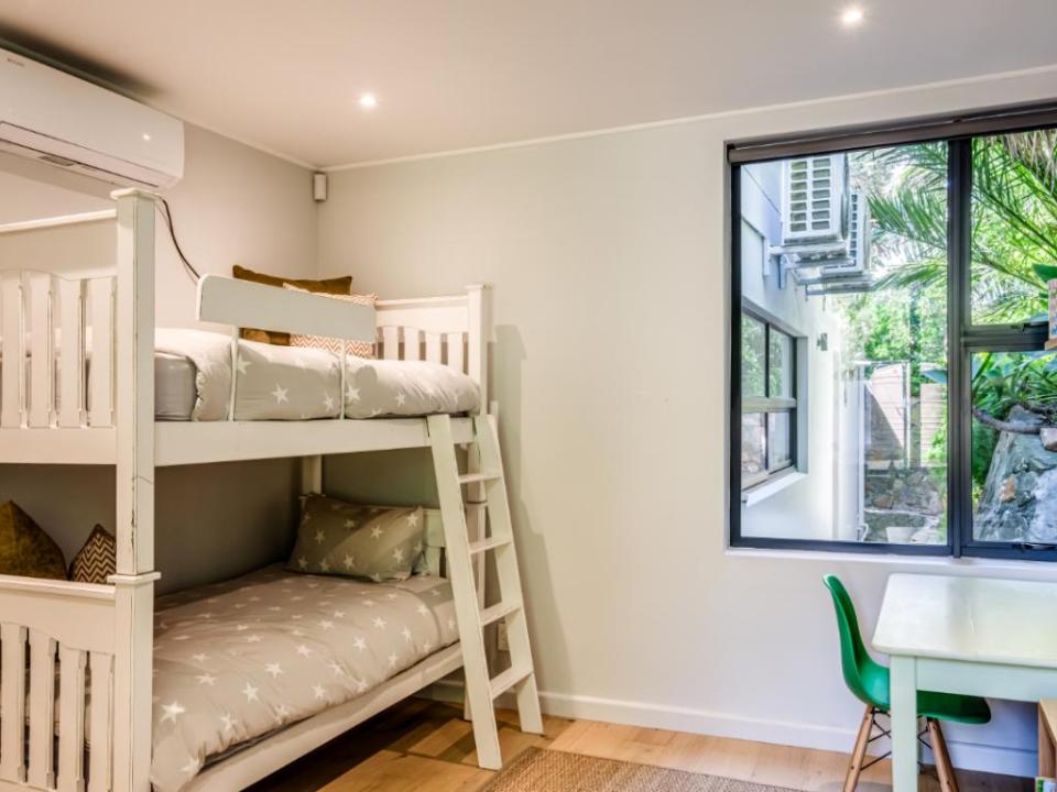 This modern and luxurious 4-bedroom villa is your home away from home. This property is designed for families and friends in search of a relaxing holiday experience in style and comfort. The villa consists of 4 airy bedrooms, each offering air conditioning for those warm summer nights. Your stay includes 3 well-appointed bathrooms, including one ensuite, one shared, and one dedicated bathroom, catering to the needs of all guests. The heart of the villa is the fully equipped, state-of-the-art kitchen, inviting you to cook savoury dishes and enjoy memorable meals together. The open-plan layout flows seamlessly, creating an abundance of space for both relaxation and socializing. Step outside into the spacious outdoor area, where you’ll find a private swimming pool, garden, and braai facilities. The kids will be delighted with the trampoline and swing set, ensuring endless hours of fun for the entire family. Additionally, the property is equipped with an alarm system, providing peace of mind throughout your stay. With air conditioning present throughout the property, it’s easy to cool off during warm days or maintain a comfortable temperature at night.