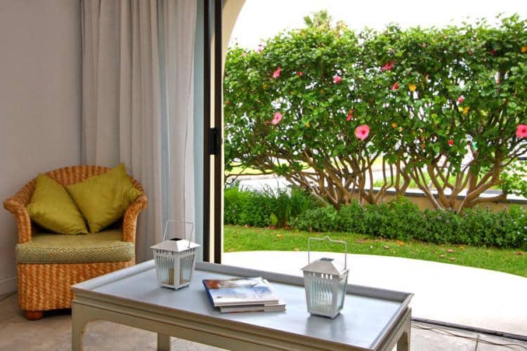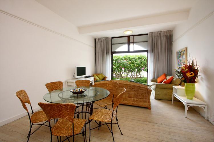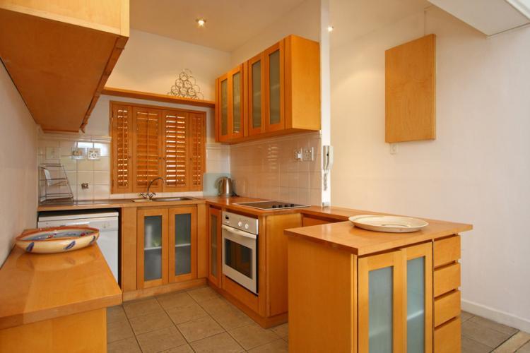 Seaside Garden is a bright, 2 bedroom garden flat in Bantry Bay. An open-plan kitchen, dining area and lounge open onto a small patch of grass, shielded from the road by a large hibiscus hedge.