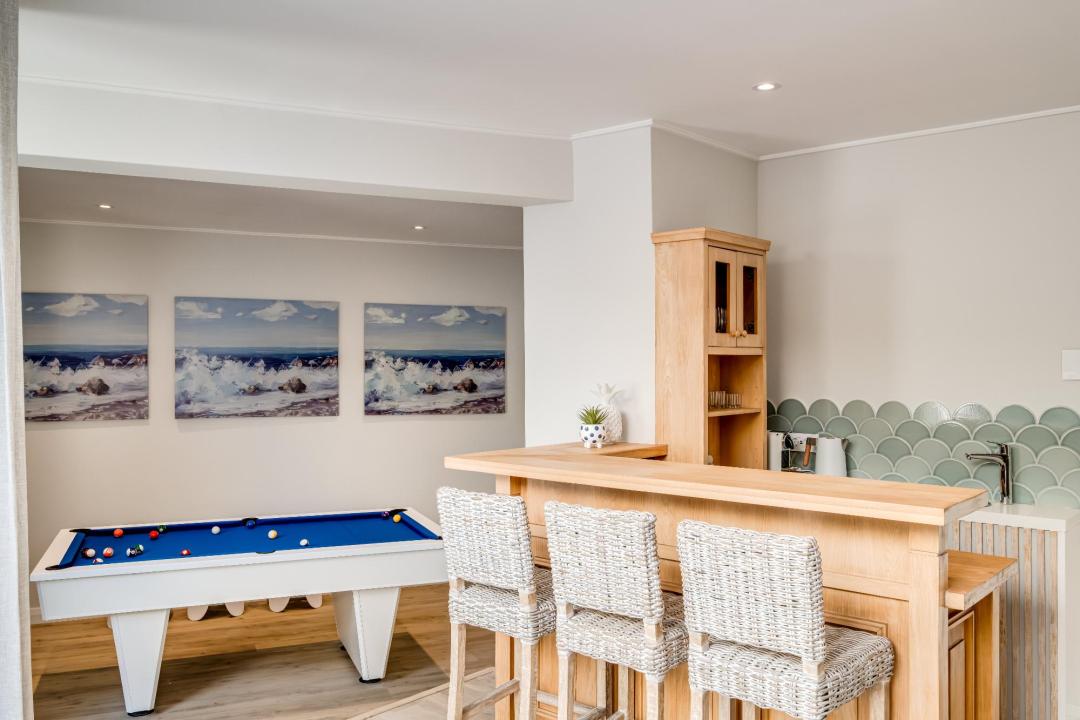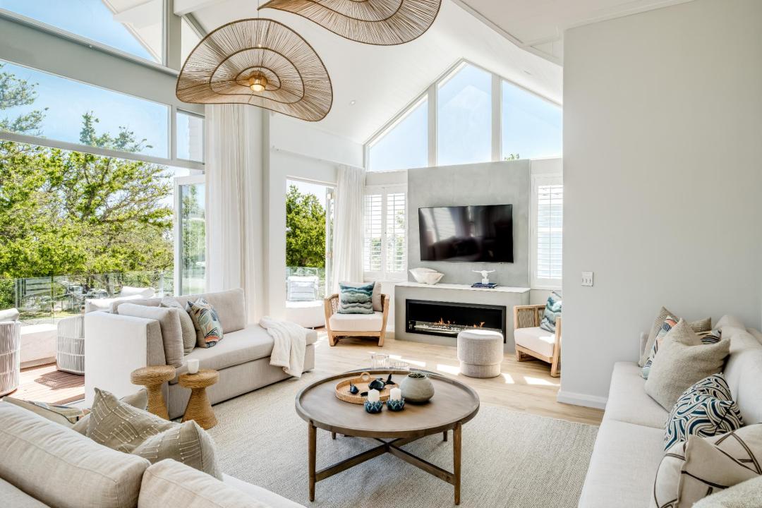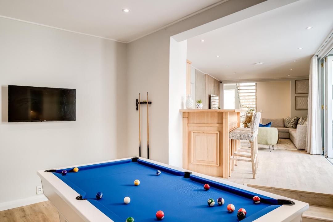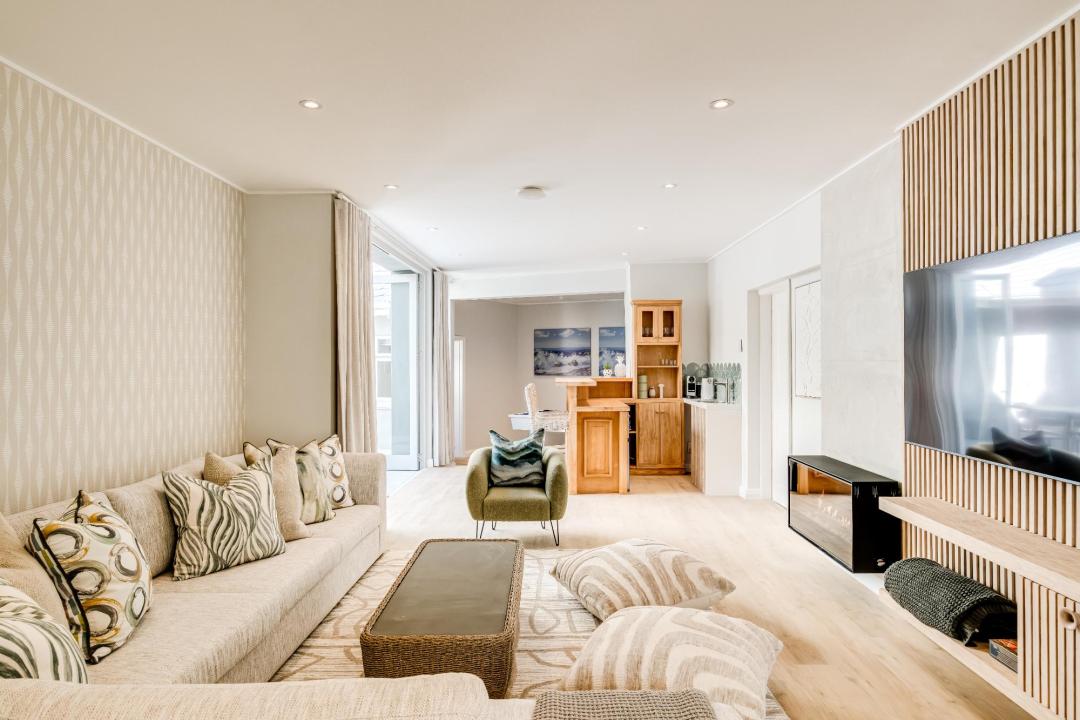 Walking distance to Camps Bay Beach and Promenade, Seven the Drive is a serene escape in the heart of Camps Bay. Light pours through double-volume windows, illuminating soft timber tones and coastal shades of blue that echo the surrounding landscape. Designed for easy living, the home features six ensuite bedrooms, each with air-conditioning, workspaces, and tranquil views of either the ocean, garden, or Table Mountain. The sleek kitchen, complete with a gas hob, Nespresso machine, and breakfast bar, connects to the dining area, perfect for relaxed gatherings or leisurely mornings. Open-plan living and dining areas flow to sunny terraces, while an entertainment lounge, with bar, pool table, and fireplace, creates a relaxed social hub. Outside, a pool, pizza oven, and alfresco dining spaces invite long summer afternoons under the mountain’s gaze. Just moments from the Table Mountain Cableway and the lively Camps Bay Promenade, Seven the Drive captures the quiet sophistication and natural beauty of Cape Town’s coastline.