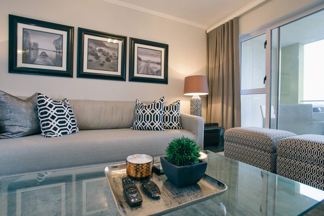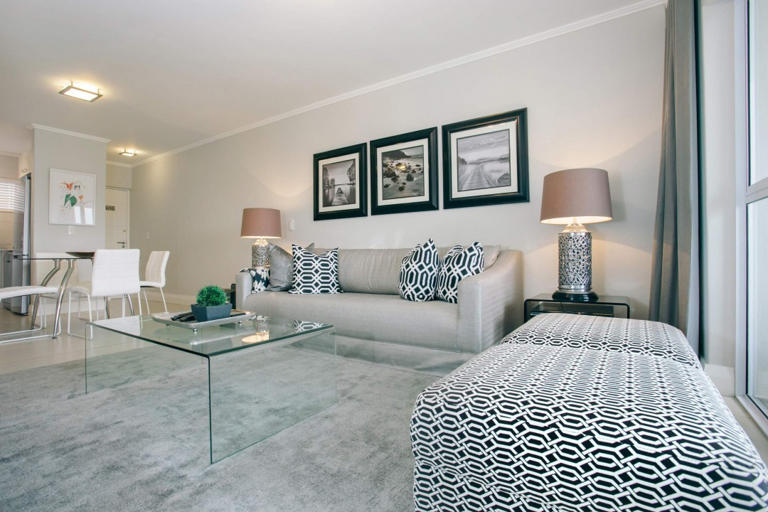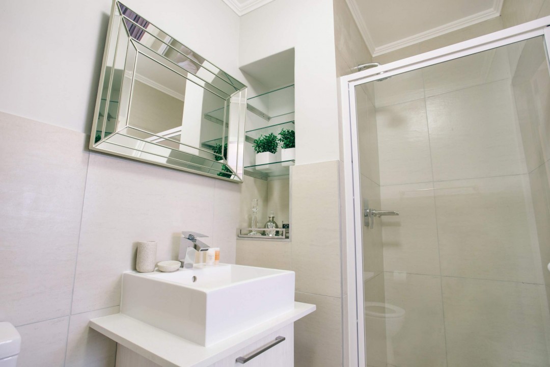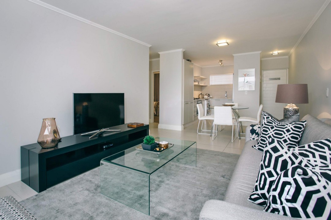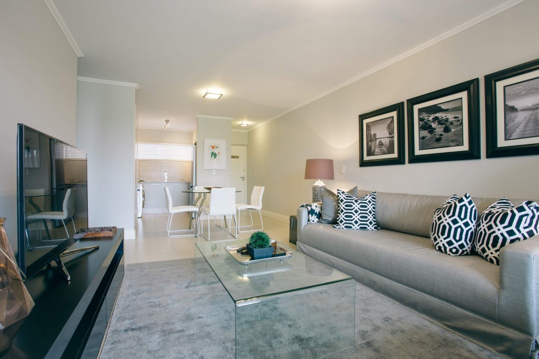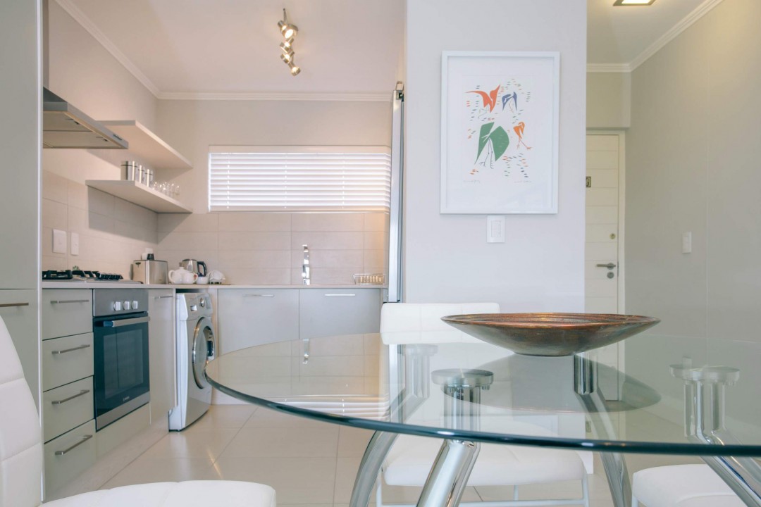 This upmarket, luxury, fully furnished and equipped 2 bedroomed, 2 bathroom (1 with bath and 1 with shower) with balcony apartment is situated in a complex that boasts 24 hour manned security, a children’s playground and stunning pool and braai area. The apartment is furnished to the highest standards including high quality finishes and linens. It also includes a washer/dryer machine, Nespresso coffee machine, dishwasher, microwave, fridge, gas stove and electric oven, toaster and kettle.