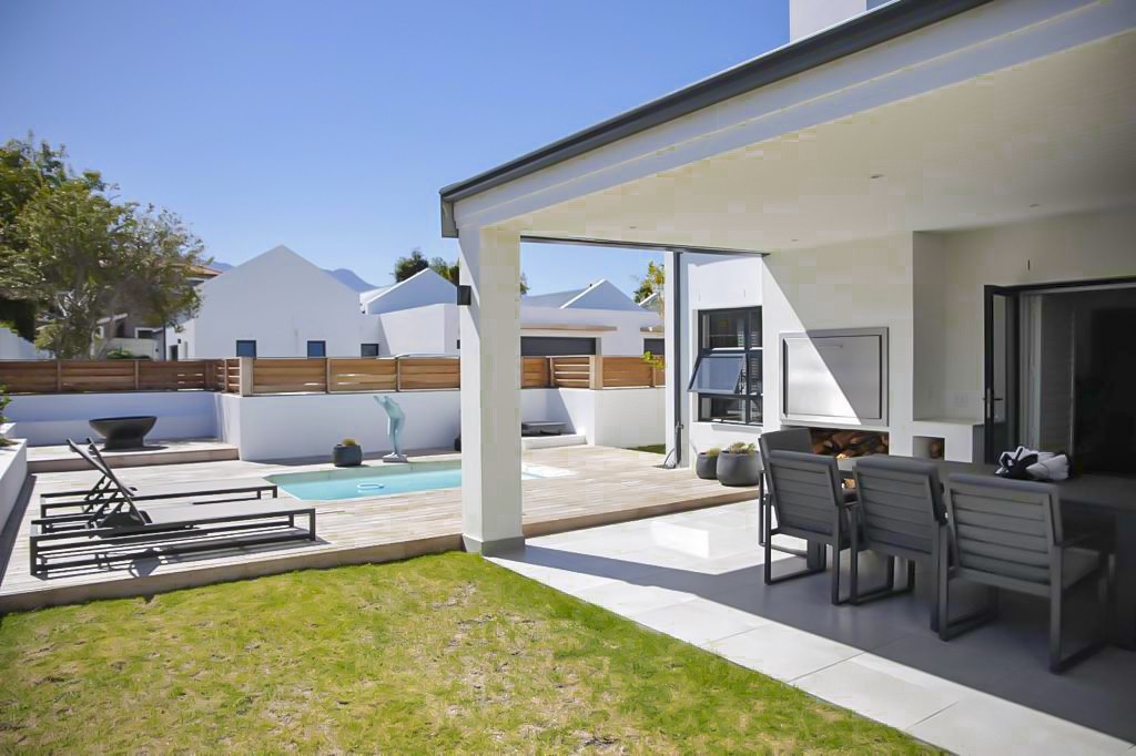 This lovely home is tastefully decorated with modern finishes throughout. There is a lovely wooden-decked entertainment area outside with a fire pit, built-in braai, and a swimming pool to cool off in the very hot summer months. Perfect spot to sit back, relax and take in the glorious Somerset West skies.