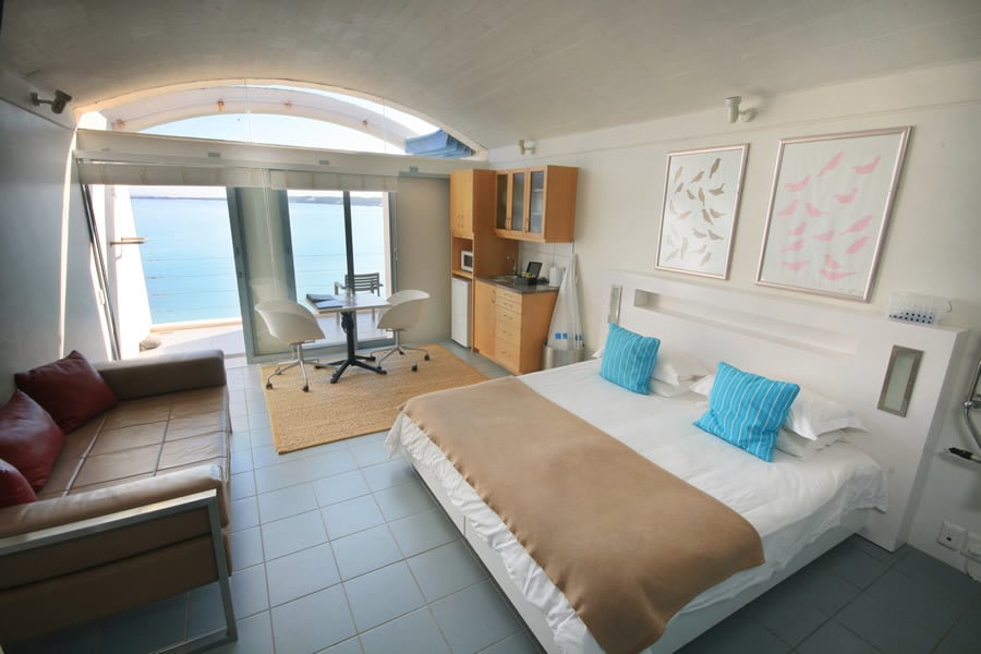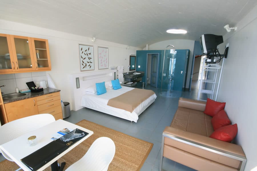 These modern, open plan studios are north facing and have breathtaking ocean views from their private balconies. They offer direct access to a wind free, secluded beach. Features include a modern spiral glass shower and a hammock where you can relax and soak up the breathtaking ocean views.