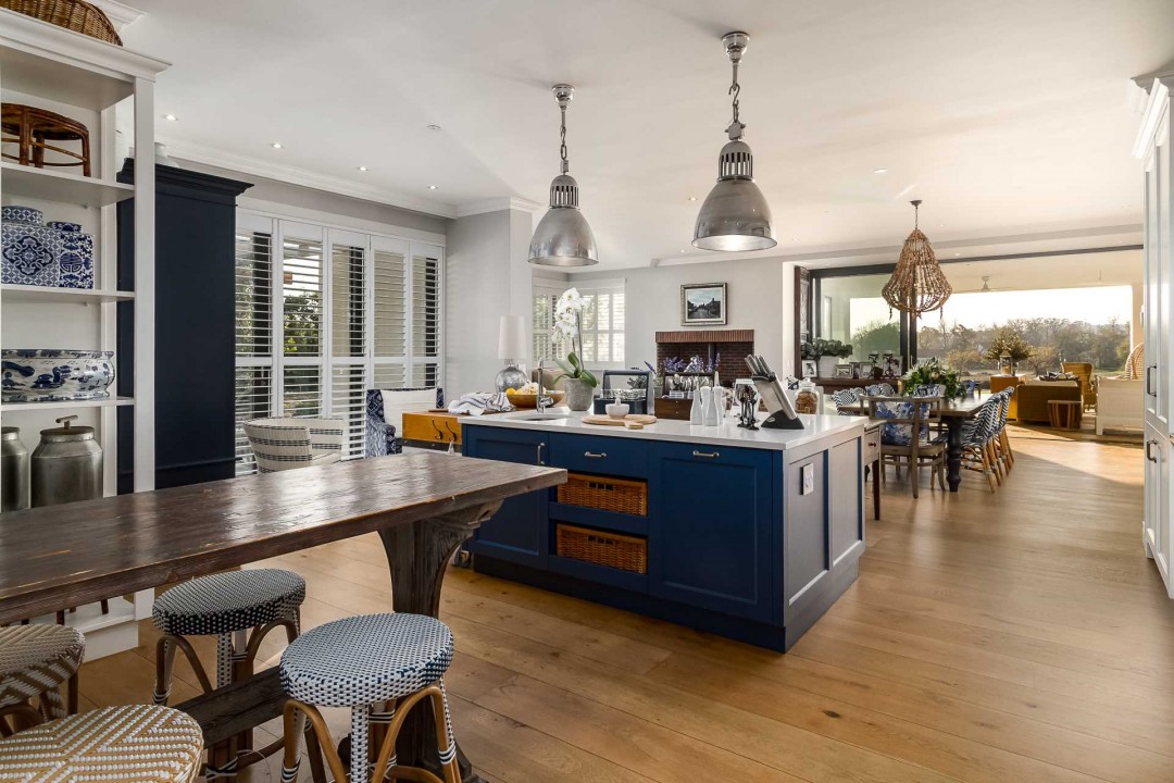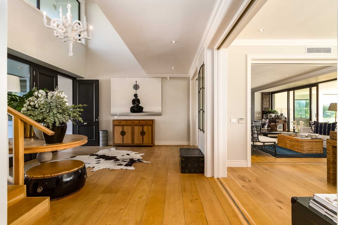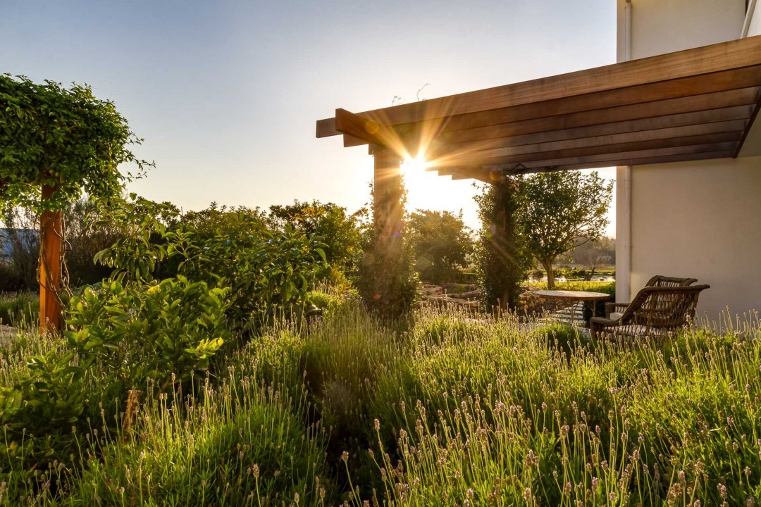 This 5-bedroom, family home has been built alongside a small, freshwater pond on the other side of a large garden with swimming pool.